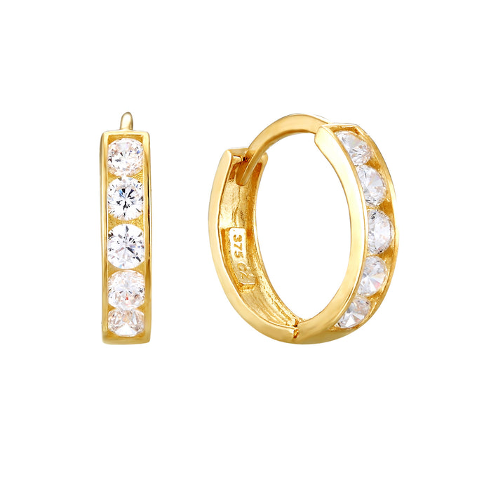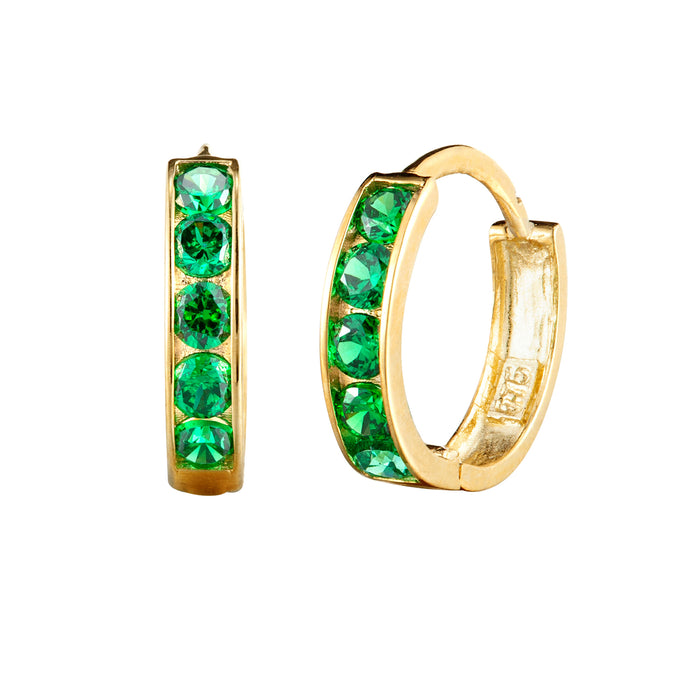 9ct Solid Gold Emerald Studded Huggie Hoops