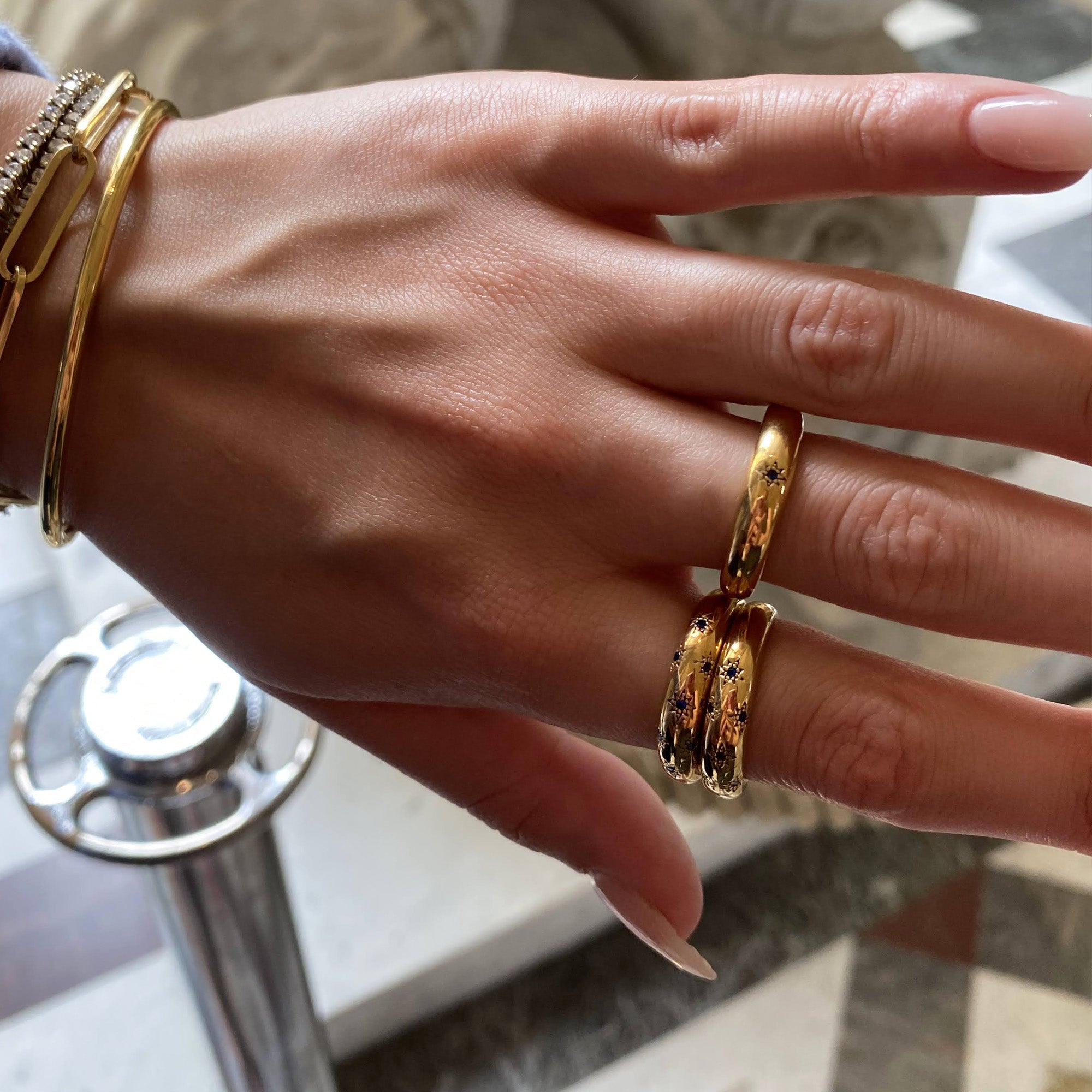 18ct Gold Vermeil Sapphire Star Domed Ring