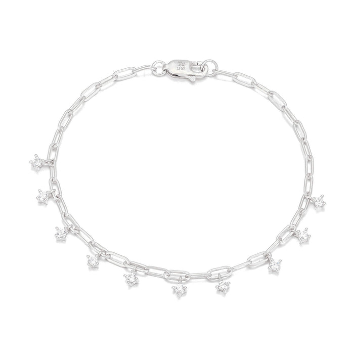 Sterling Silver CZ Pave Pebble Cord Bracelet
