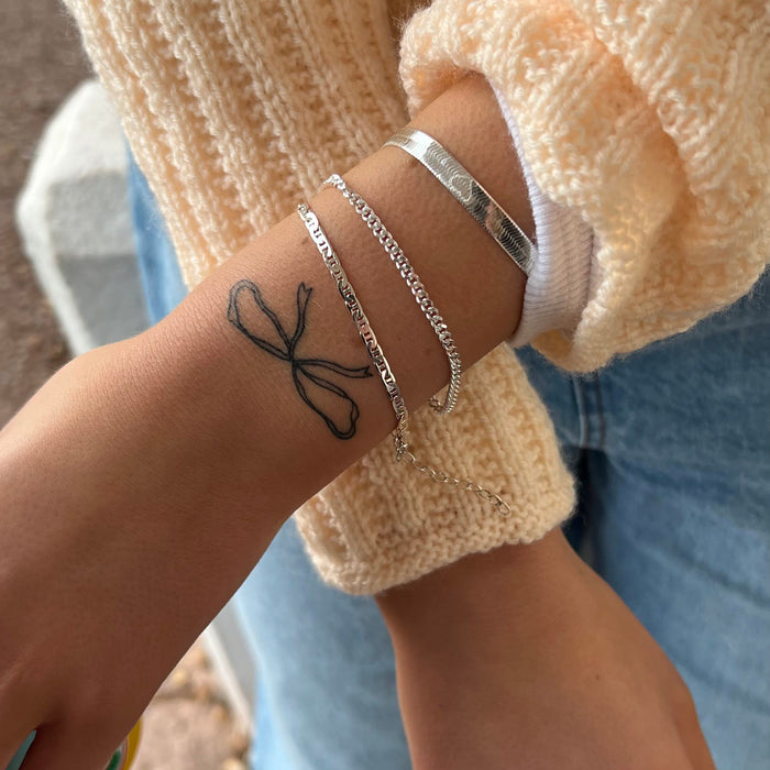 Sterling Silver Cherry and Heart Engraved Snake Chain Bracelet