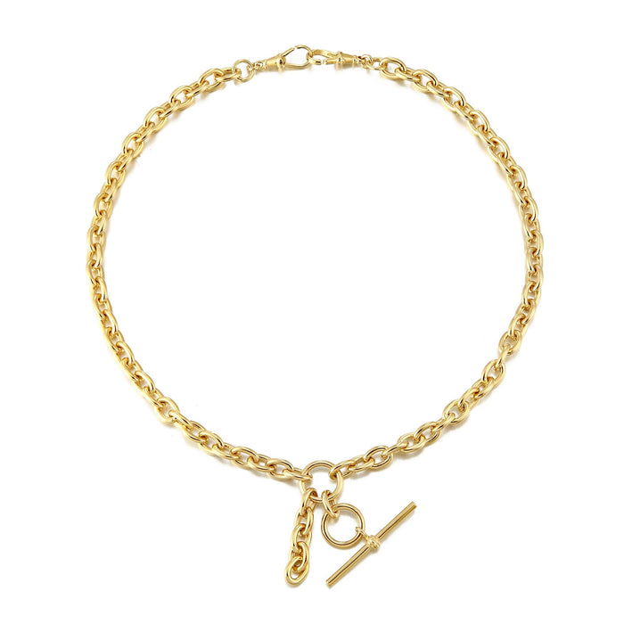 18ct Gold Vermeil Heart Charm T-bar Rolo Necklace