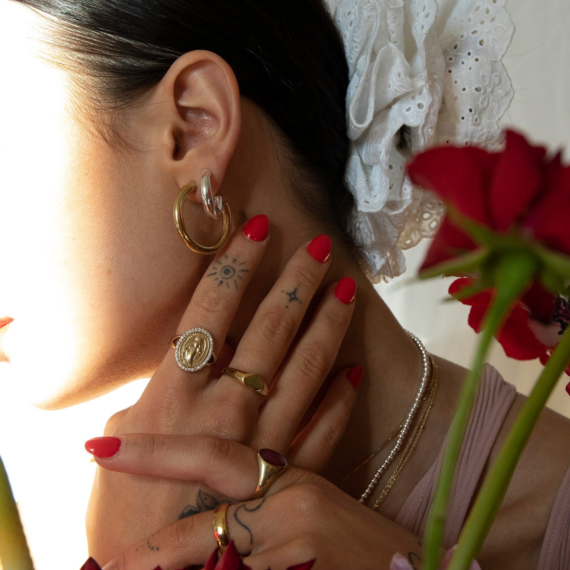 Over time, it's normal for Gold Vermeil jewellery to experience some signs of aging, meaning the gold layer can wear off and reveal the Sterling Silver underneath. But don’t worry! Our FREE Re-Plating Service will restore your Seol + Gold jewellery's original sparkle and shine. Our skilled team will polish and buff your pieces to perfection, then add thick layers (3 microns) of 18ct Gold to make them look brand new again.
