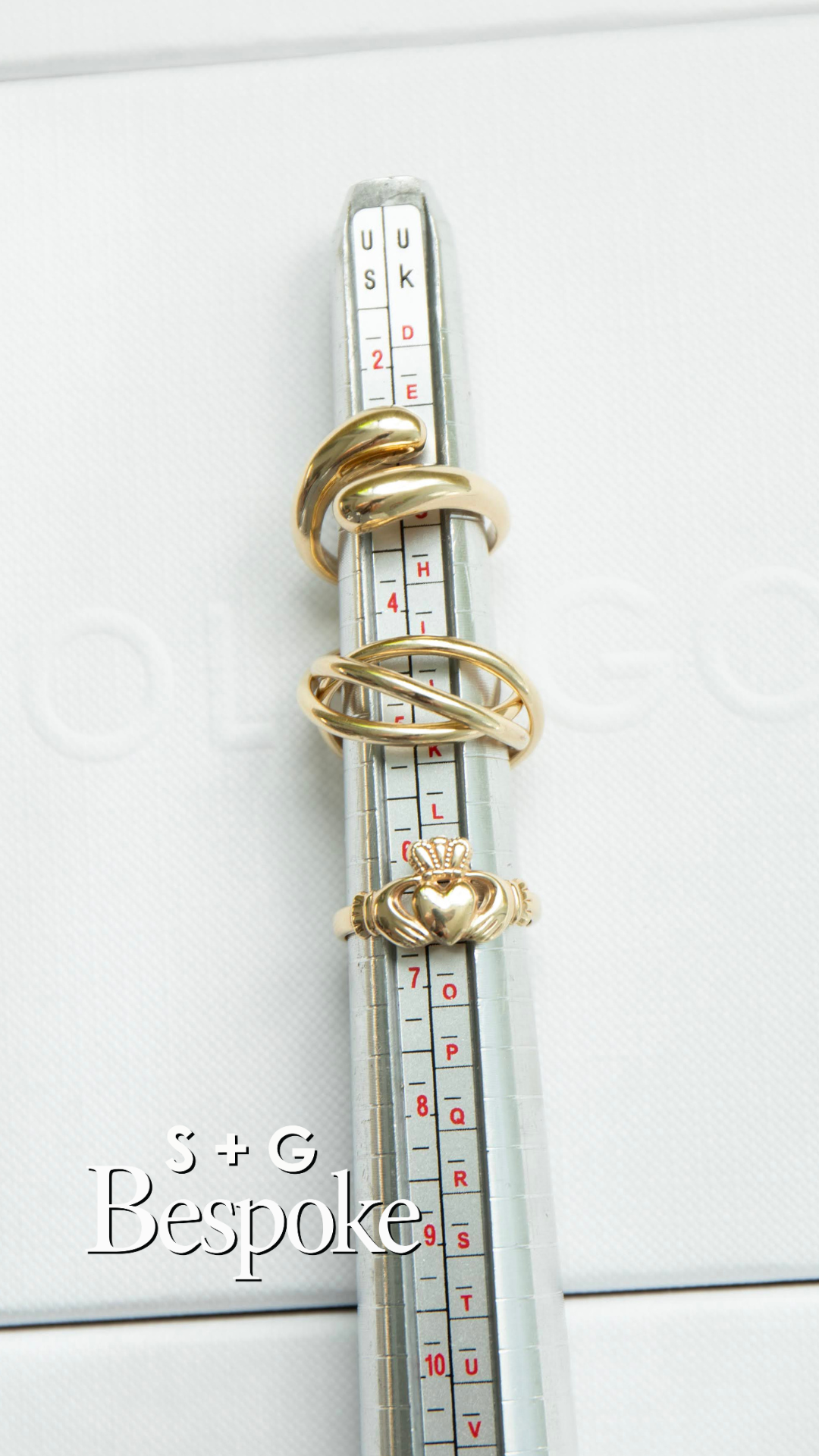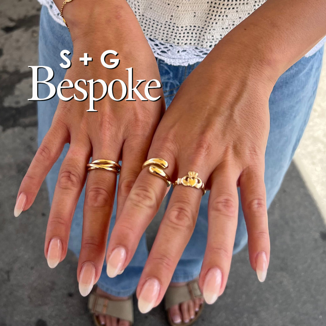 Our debut S+G Bespoke collection includes three distinct silhouettes, each chosen for their lasting style, symbolism, and substance. Choose from either the Claddagh, Rolling or Open Twist rings. Made to order, by hand, and designed to be worn for a lifetime.