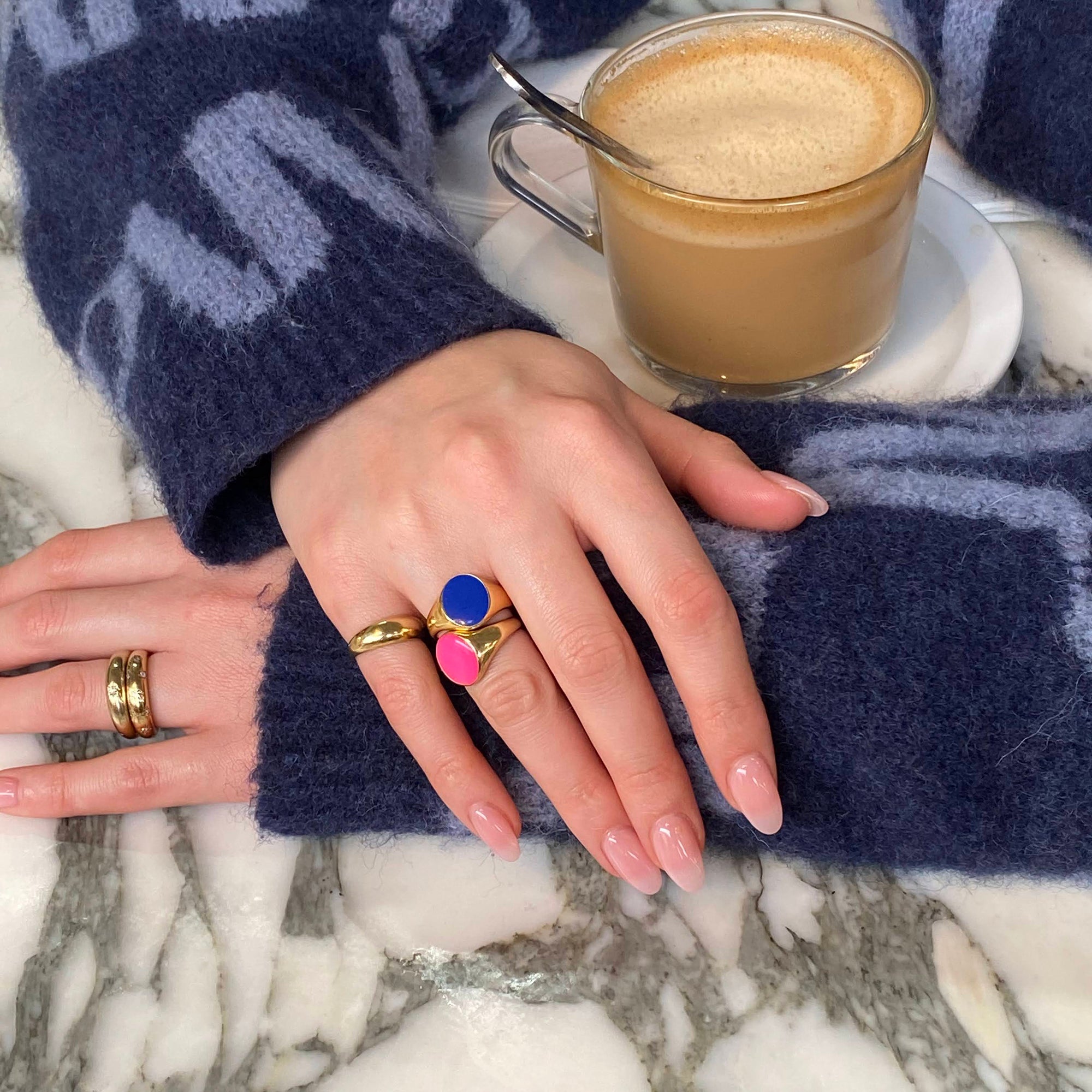 18ct Gold Vermeil Bespoke Royal Blue Enamel Signet Ring