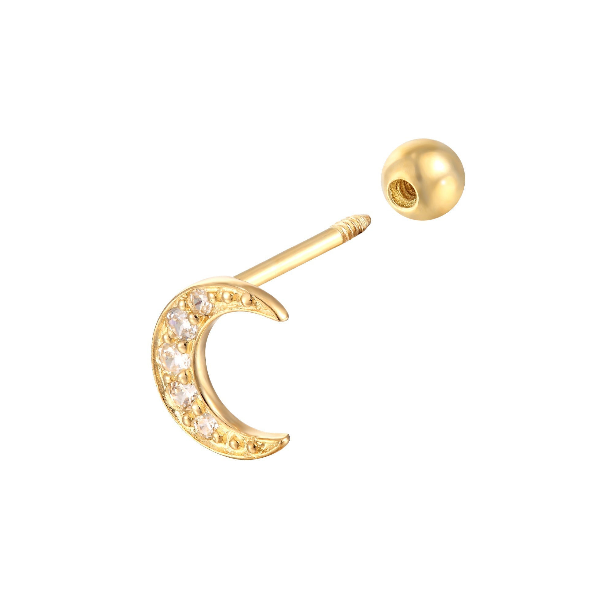 18ct Gold Vermeil CZ Crescent Moon Barbell Stud Earring