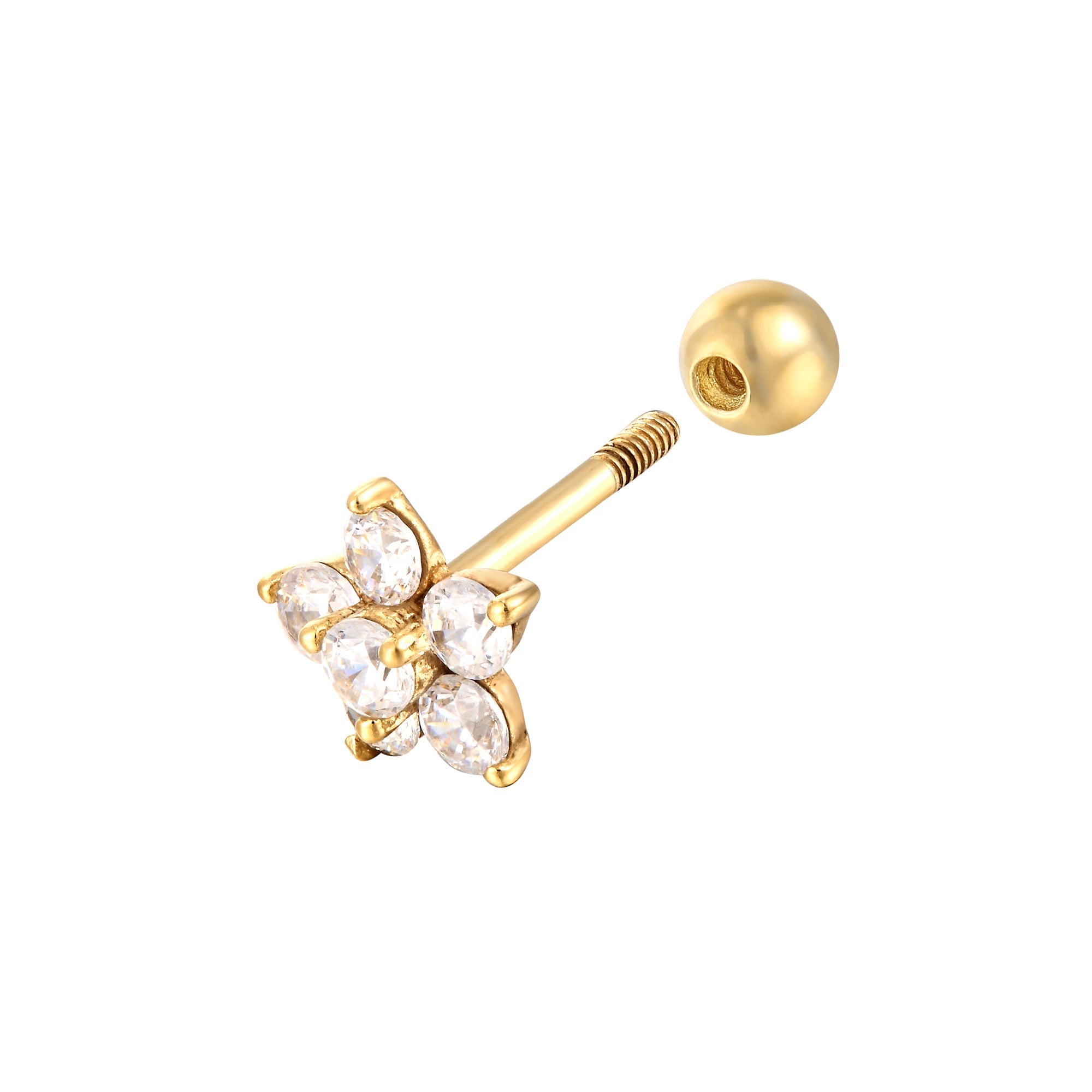 18ct Gold Vermeil CZ Flower Barbell Stud Earring