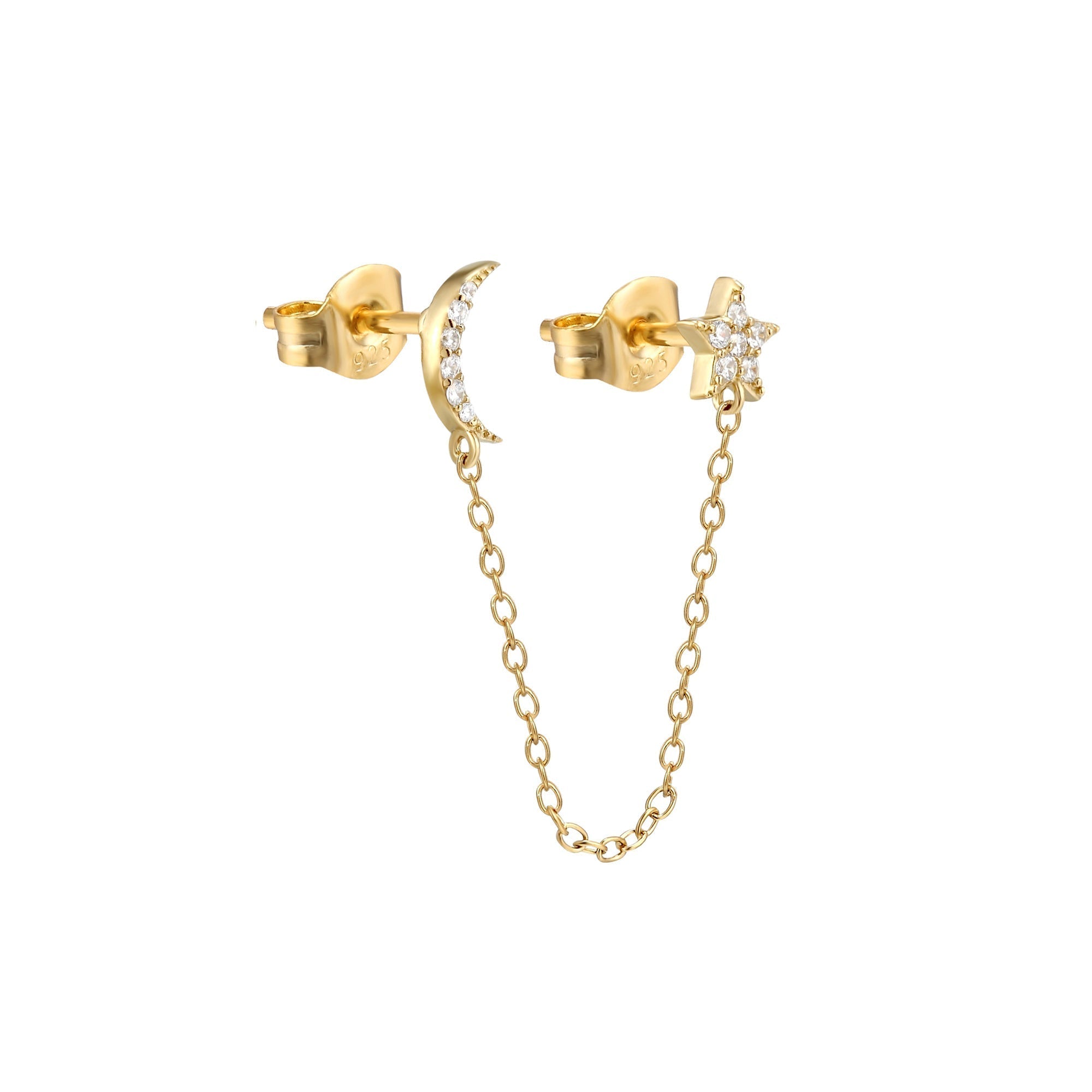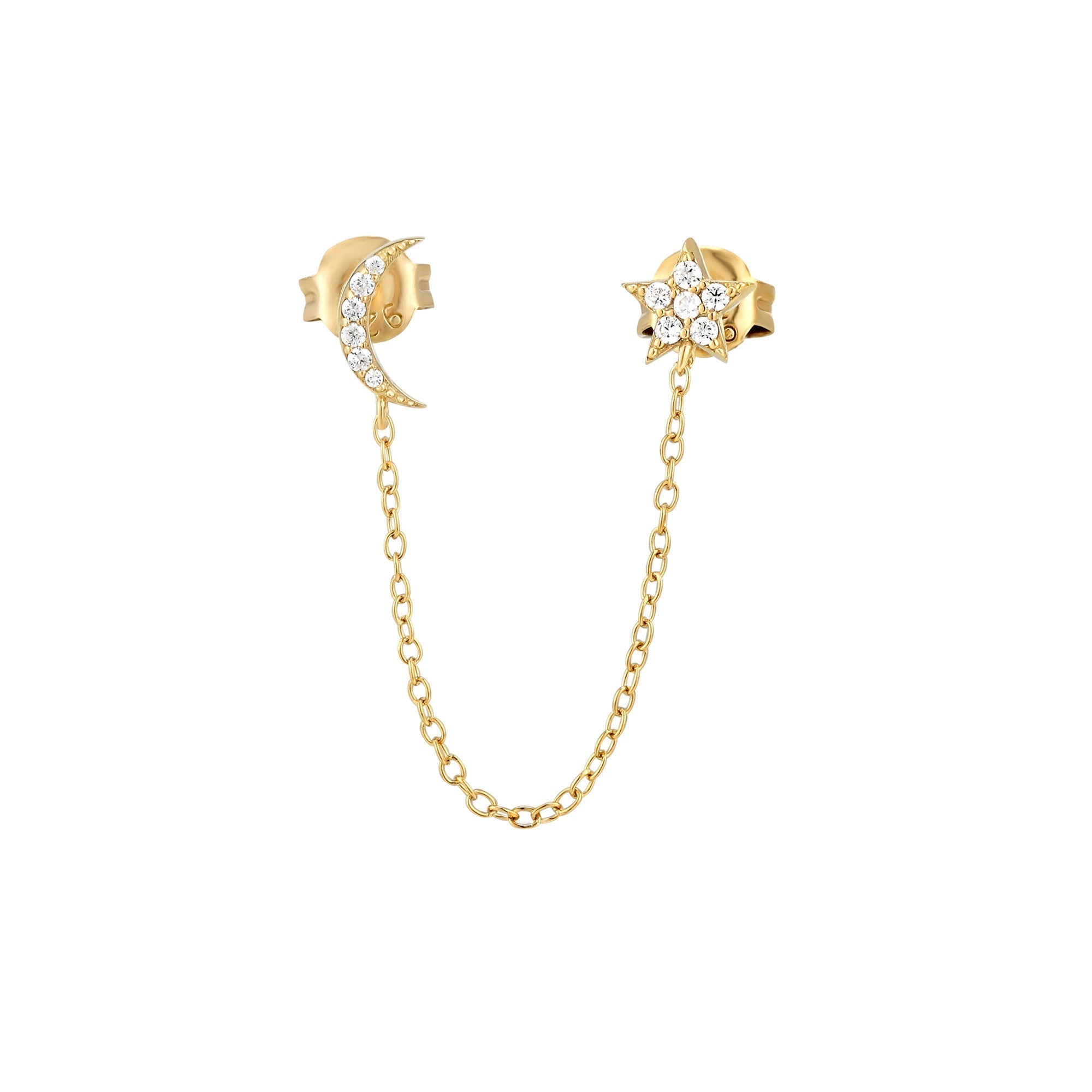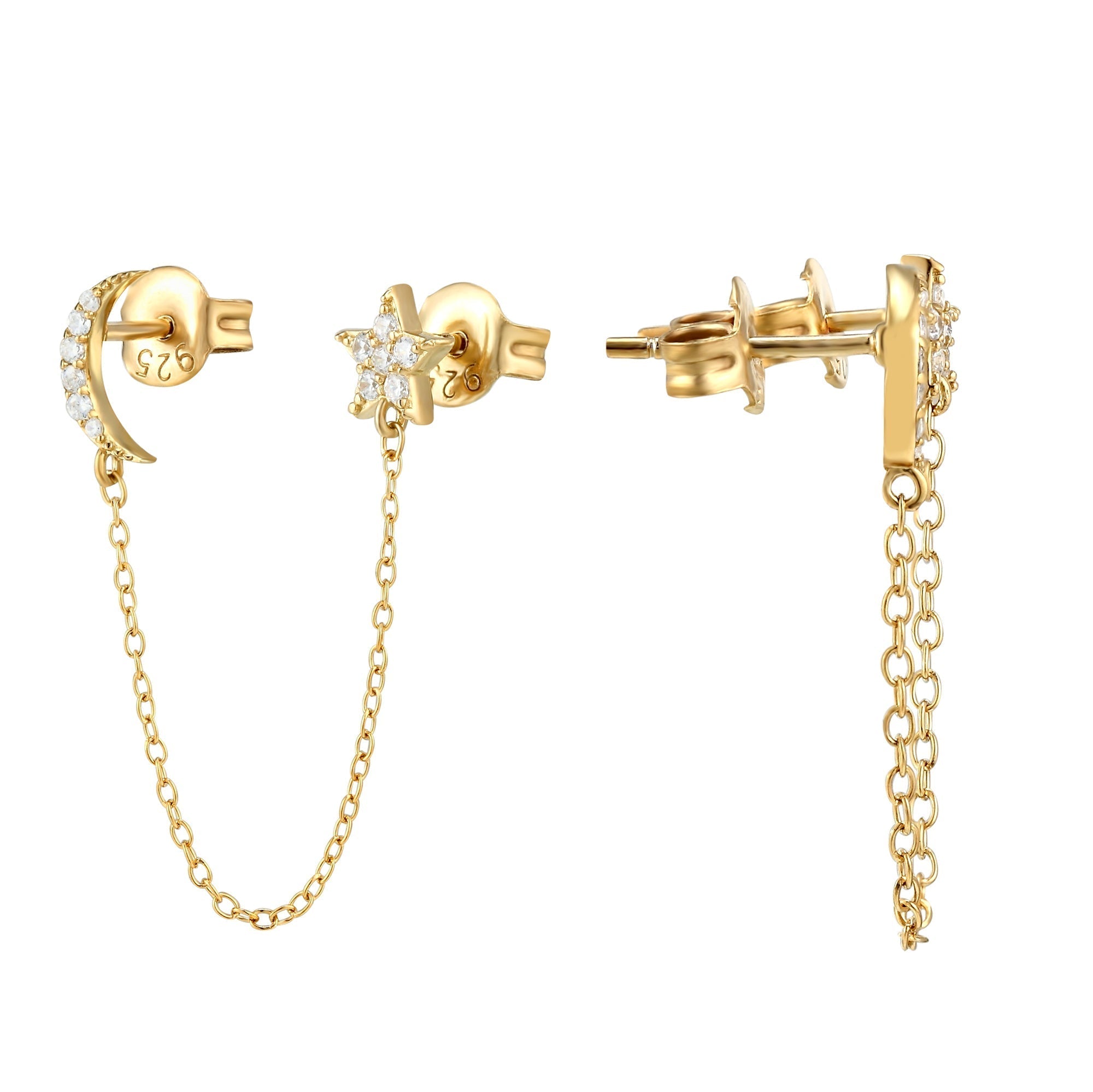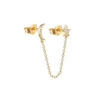 18ct Gold Vermeil CZ Moon Star Studs.