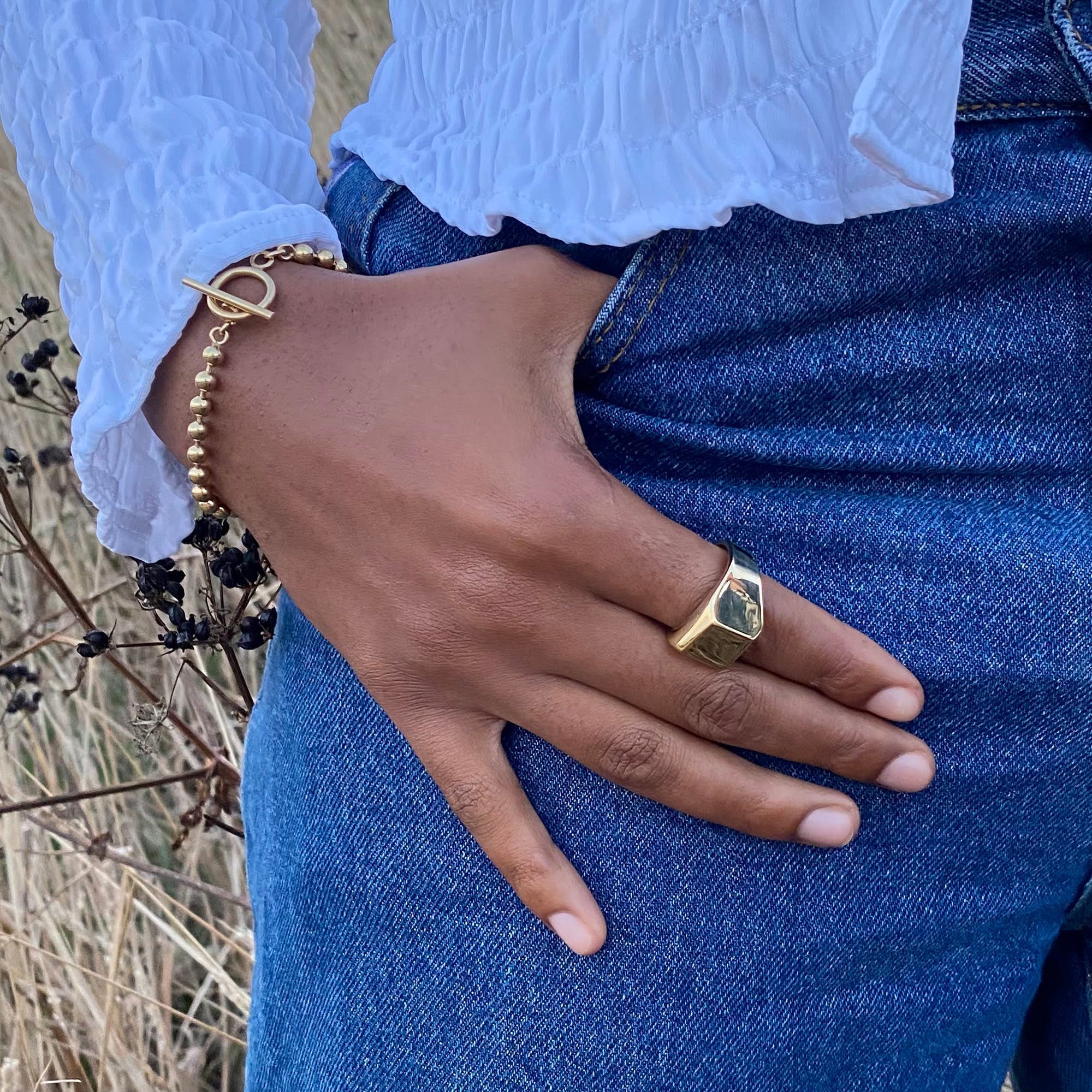 To give your jewellery a quick freshen up we suggest cleaning with a soft, lint-free cloth or, for extra sparkle power, a gold polishing cloth. But be gentle, avoid rubbing, as this will bring the gold plate off your piece.