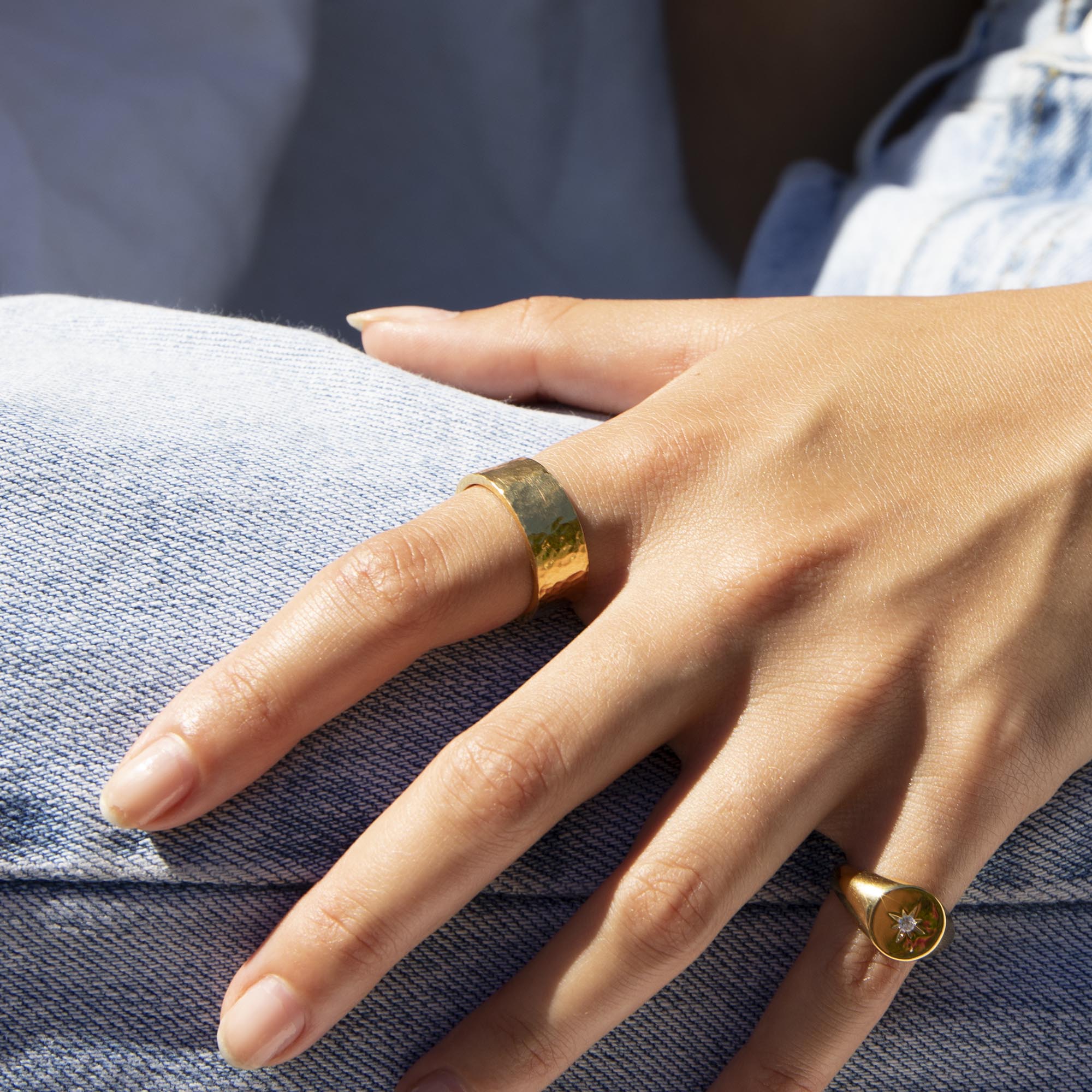 18ct Gold Vermeil Hammered Chunky Band Ring