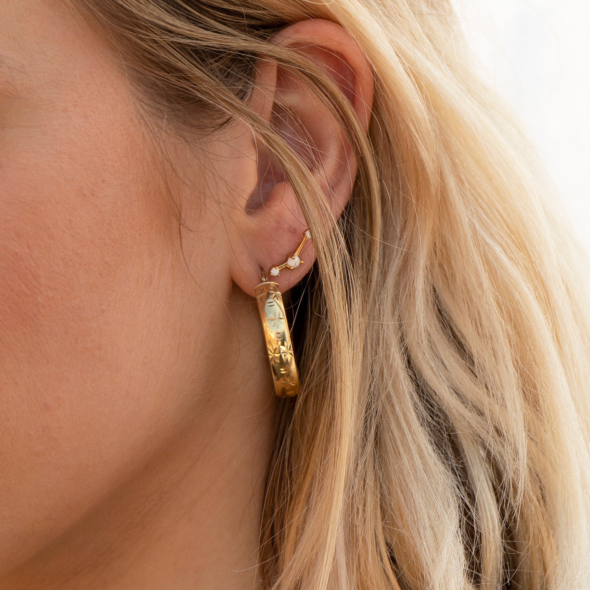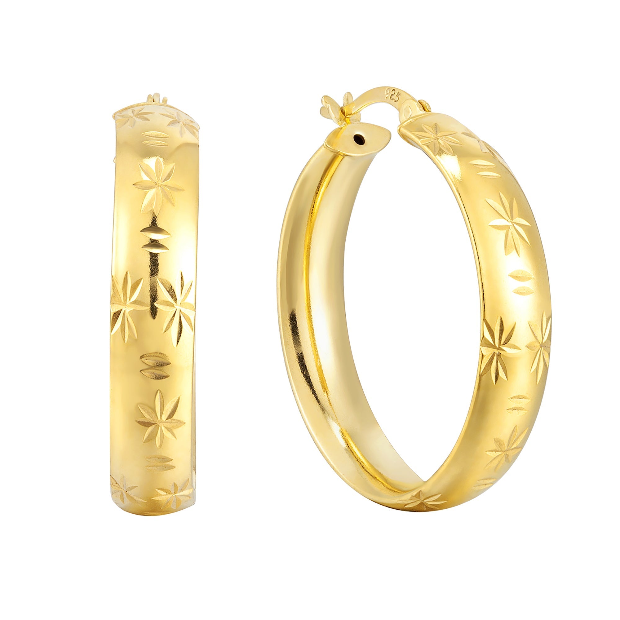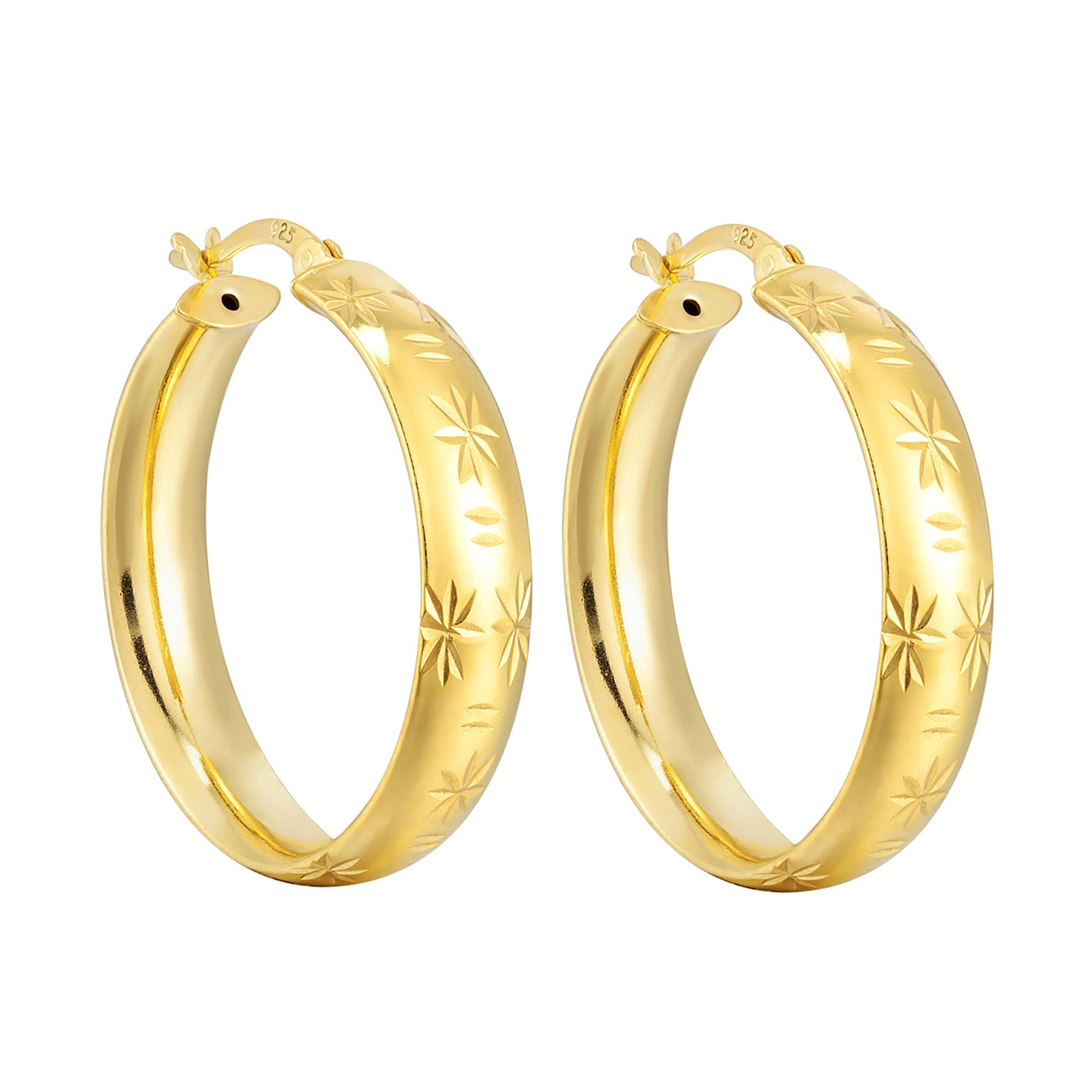 18ct Gold Vermeil Large Diamond-cut Star Pattern Creoles