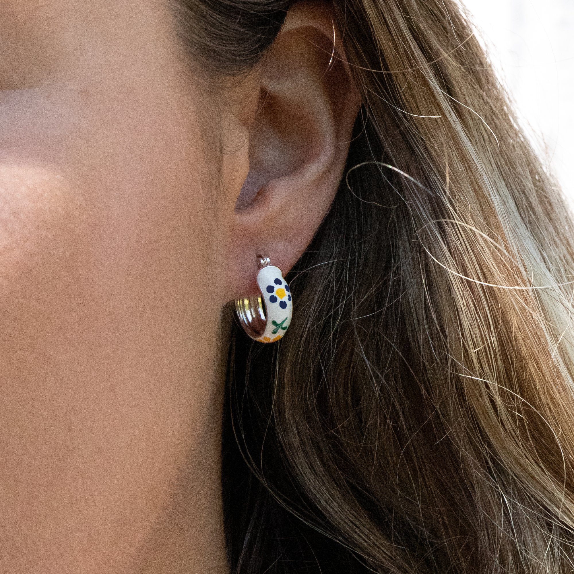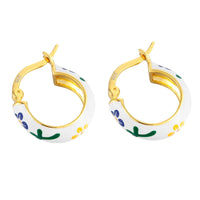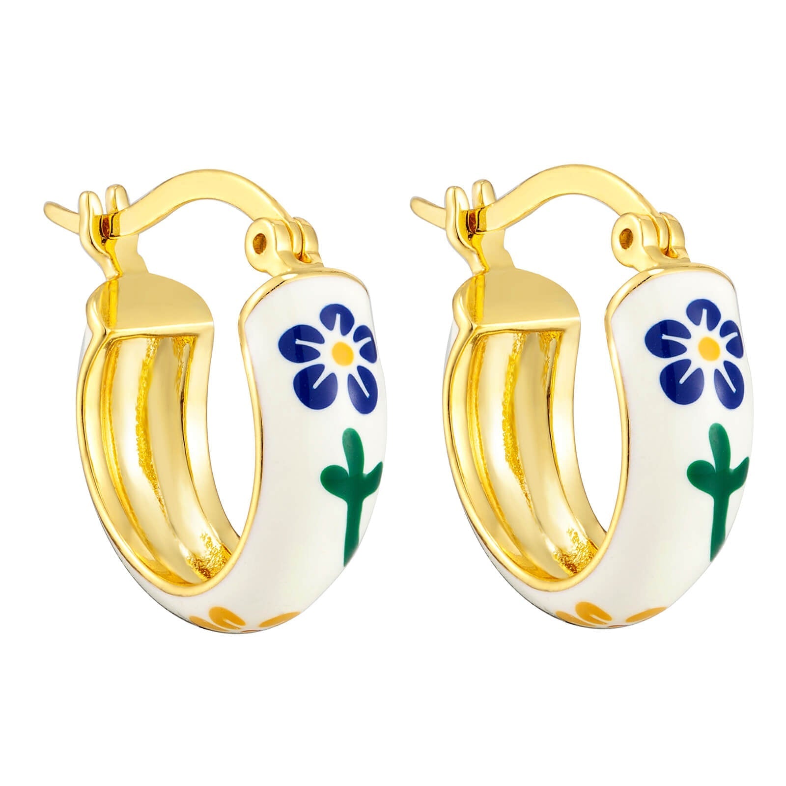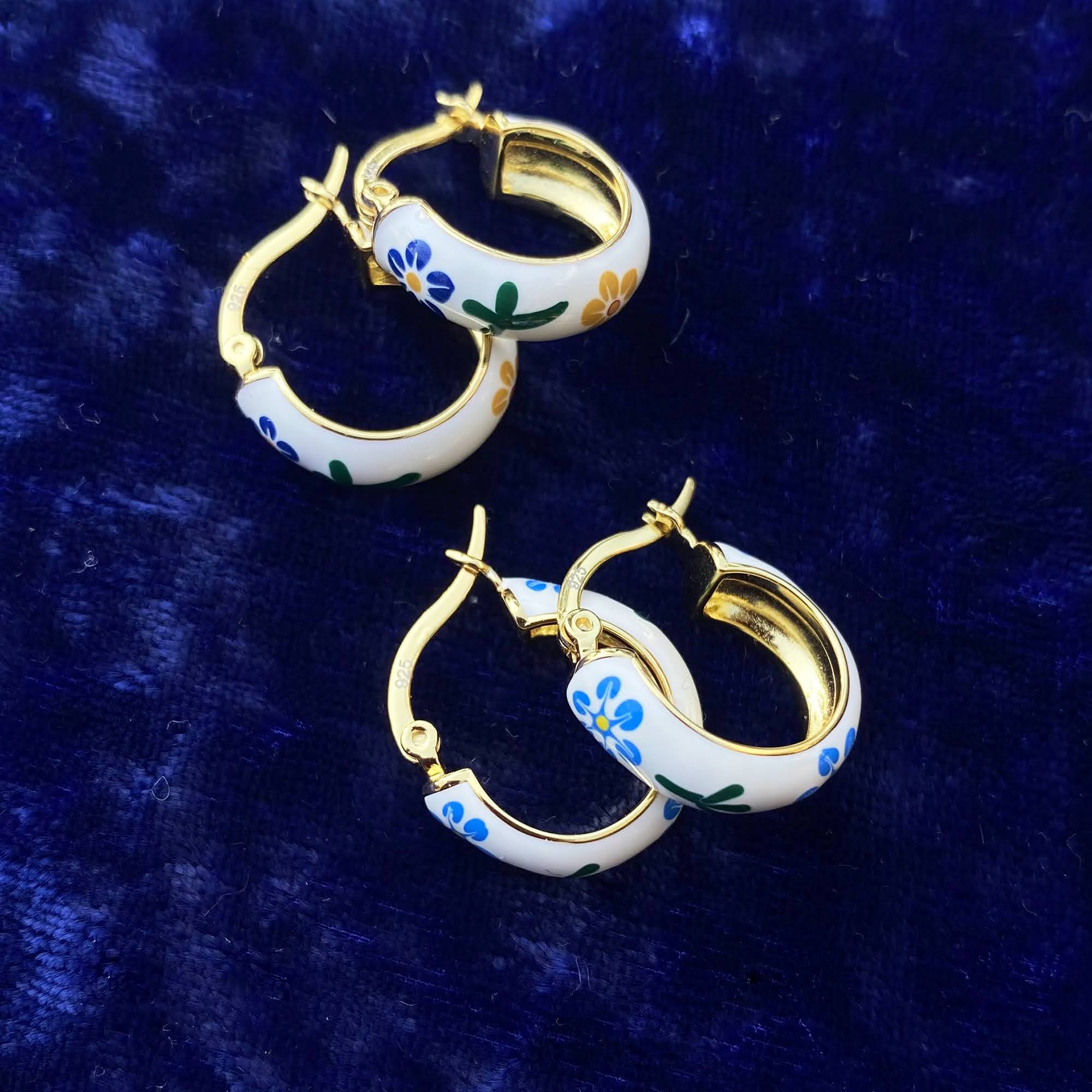 18ct Gold Vermeil Navy Flower Tiny Enamel Hoops