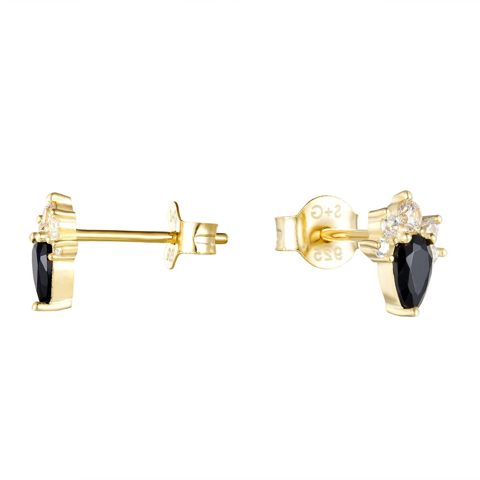 18ct Gold Vermeil Onyx CZ Cluster Stud Earrings