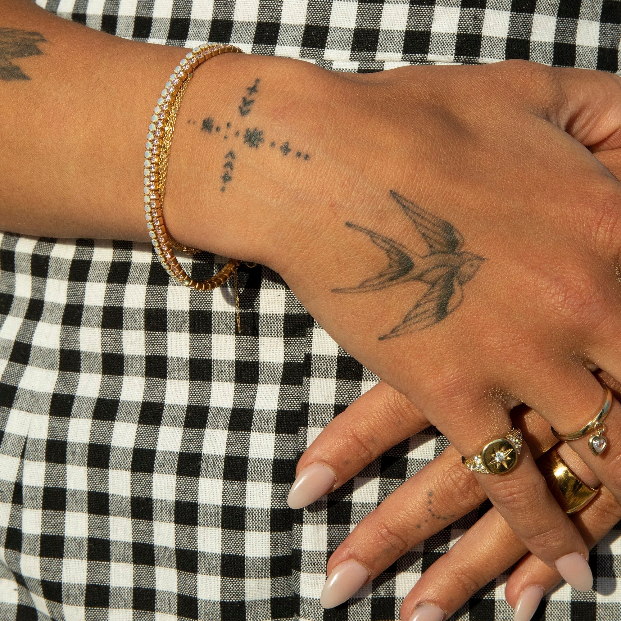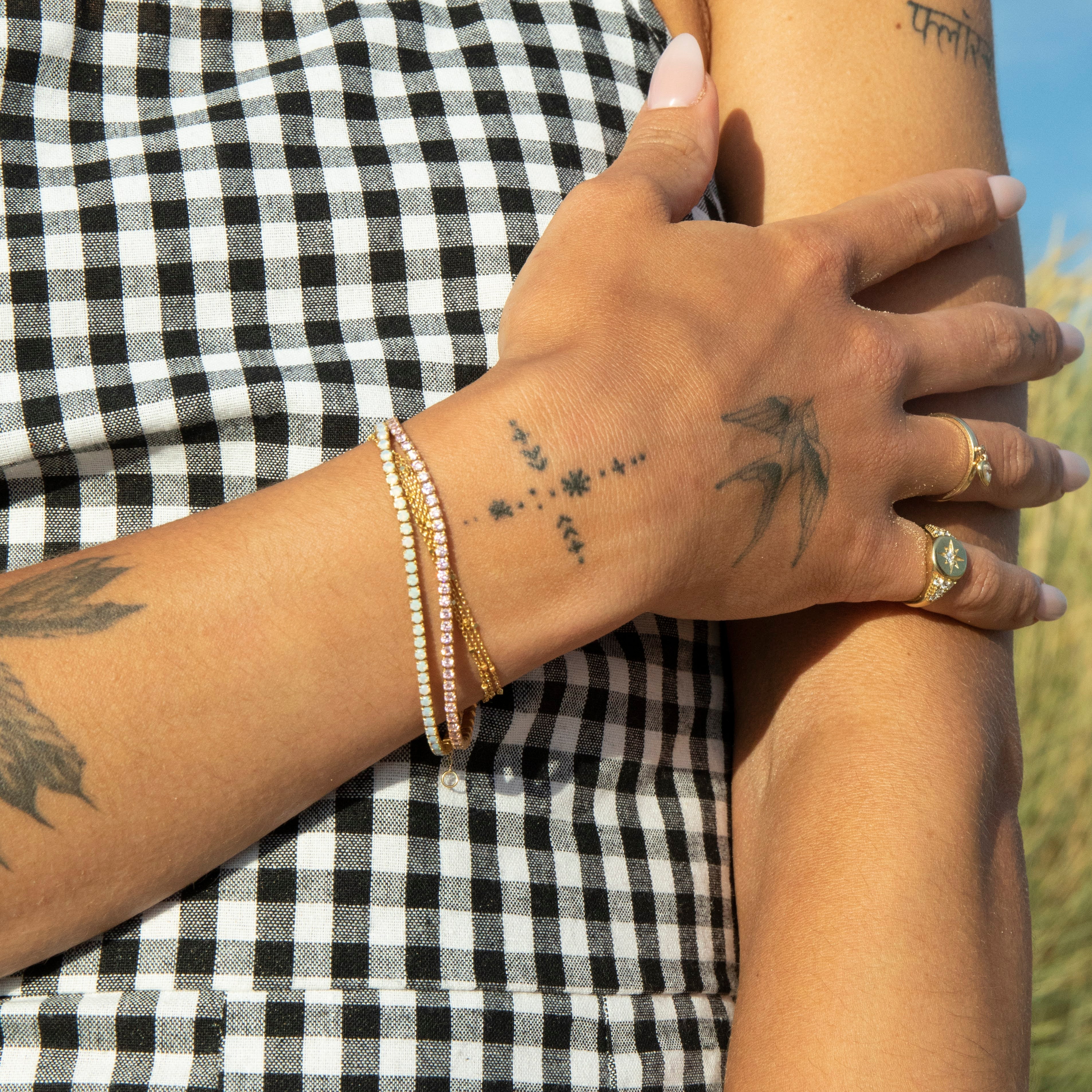 To give your jewellery a quick freshen up we suggest cleaning with a soft, lint-free cloth or, for extra sparkle power, a gold polishing cloth. But be gentle, avoid rubbing, as this will bring the gold plate off your piece.