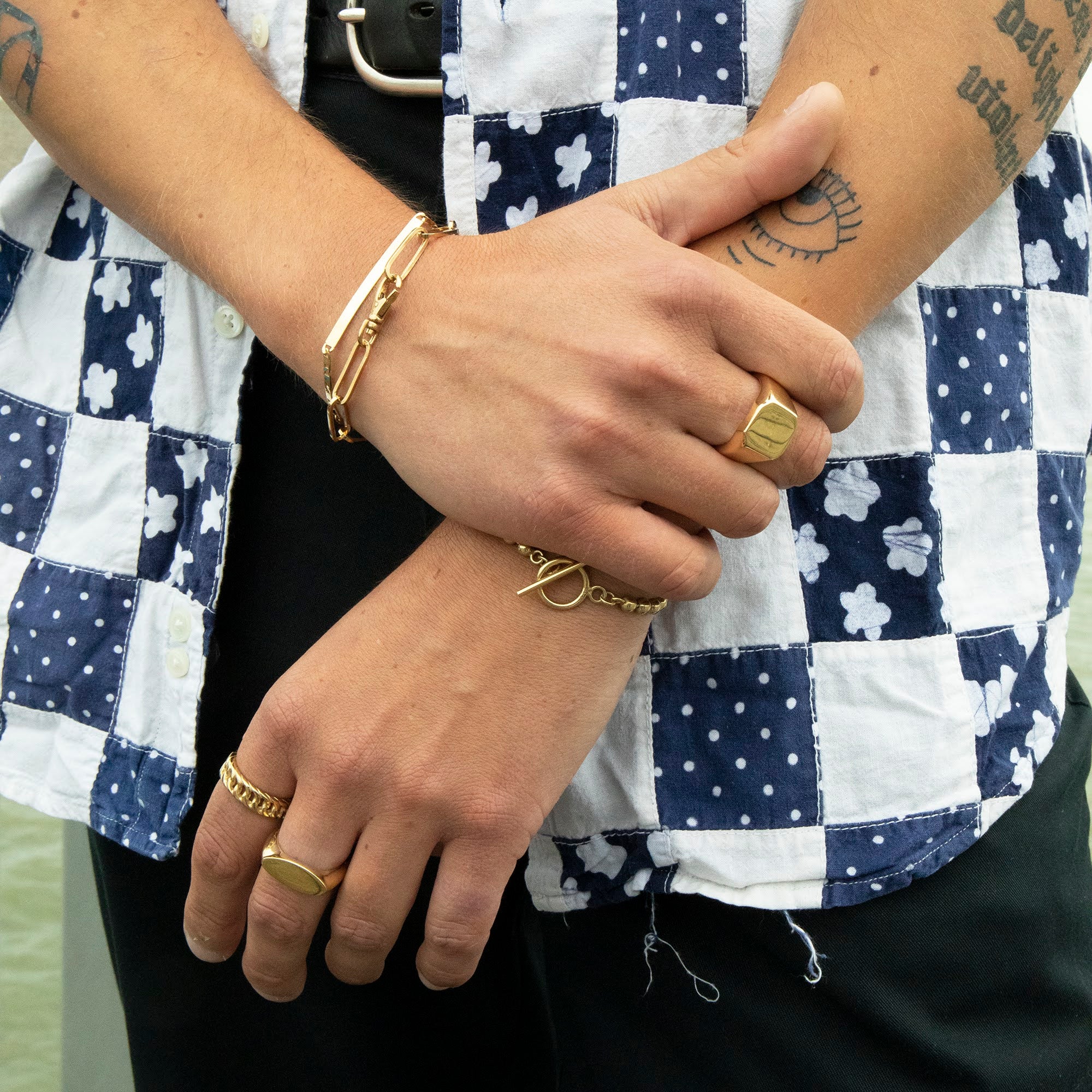 18ct Gold Vermeil Oval Bar Signet Ring (Mens)