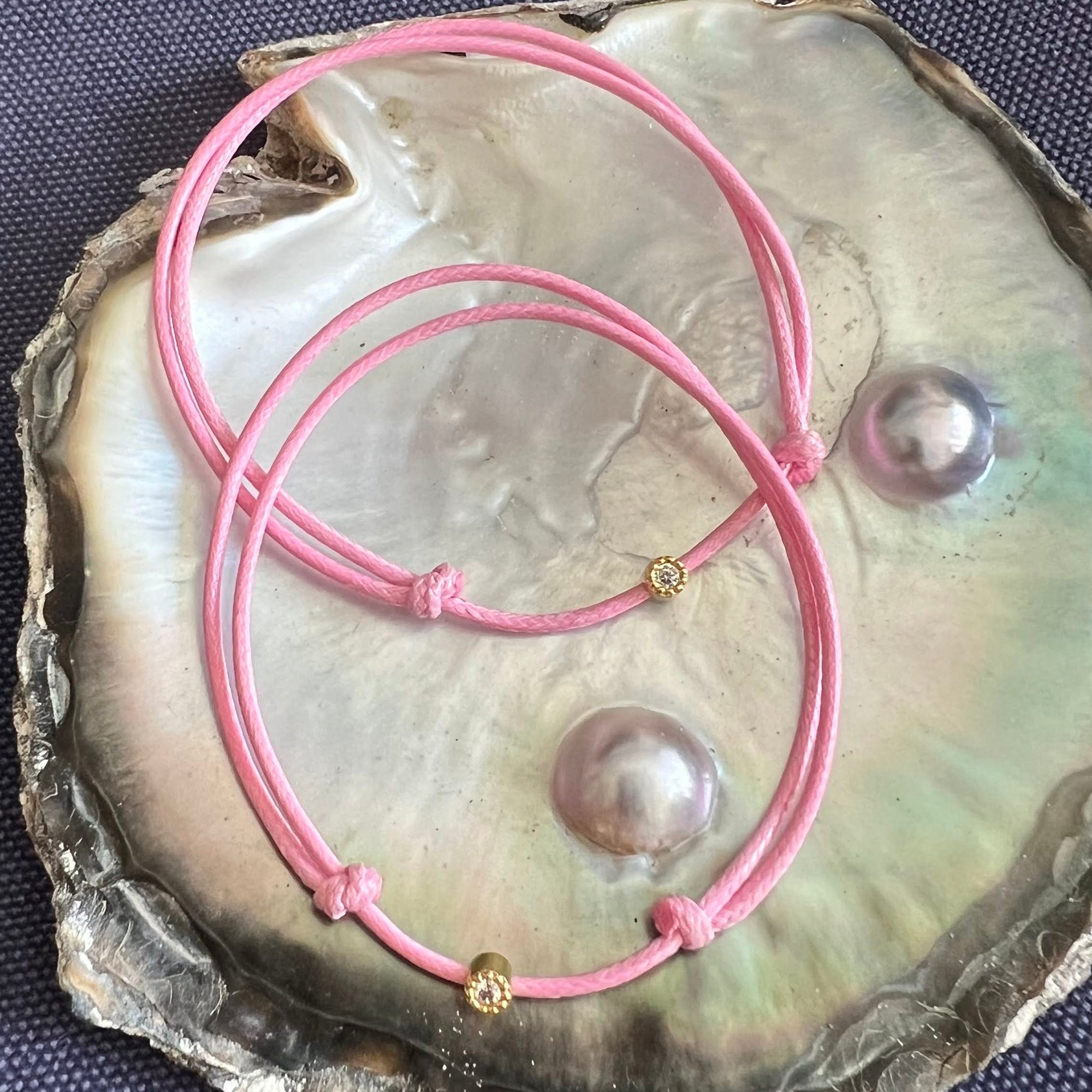 18ct Gold Vermeil Pink Cord CZ Bracelet