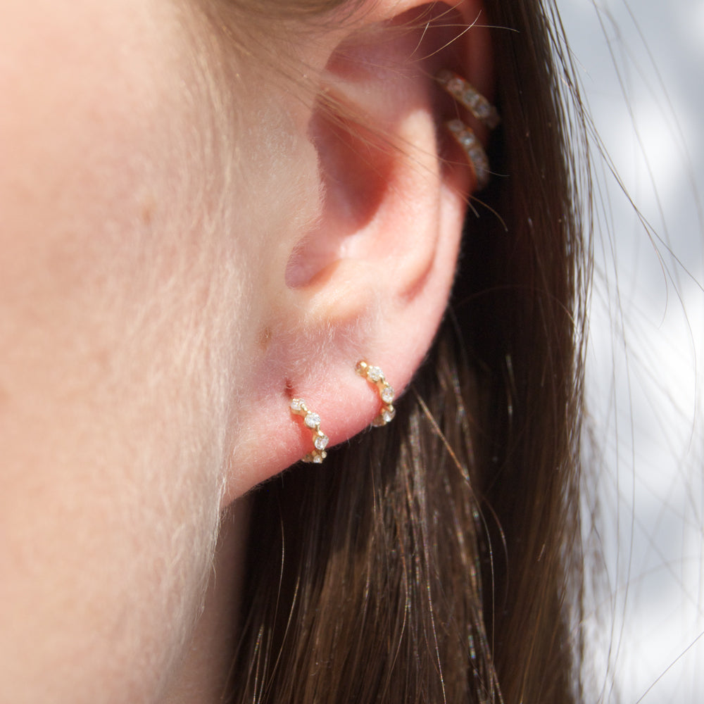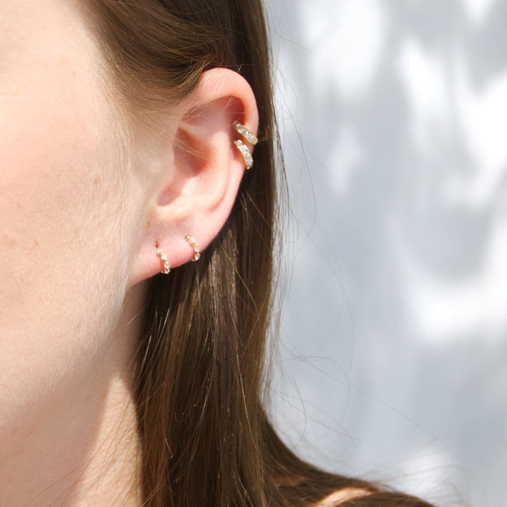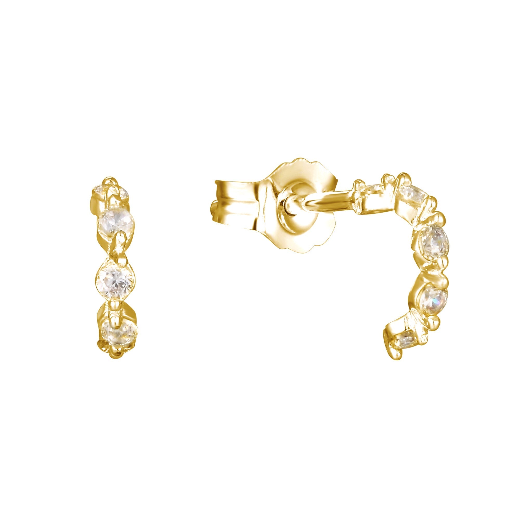 18ct Gold Vermeil Tiny Half Hoop CZ Studs