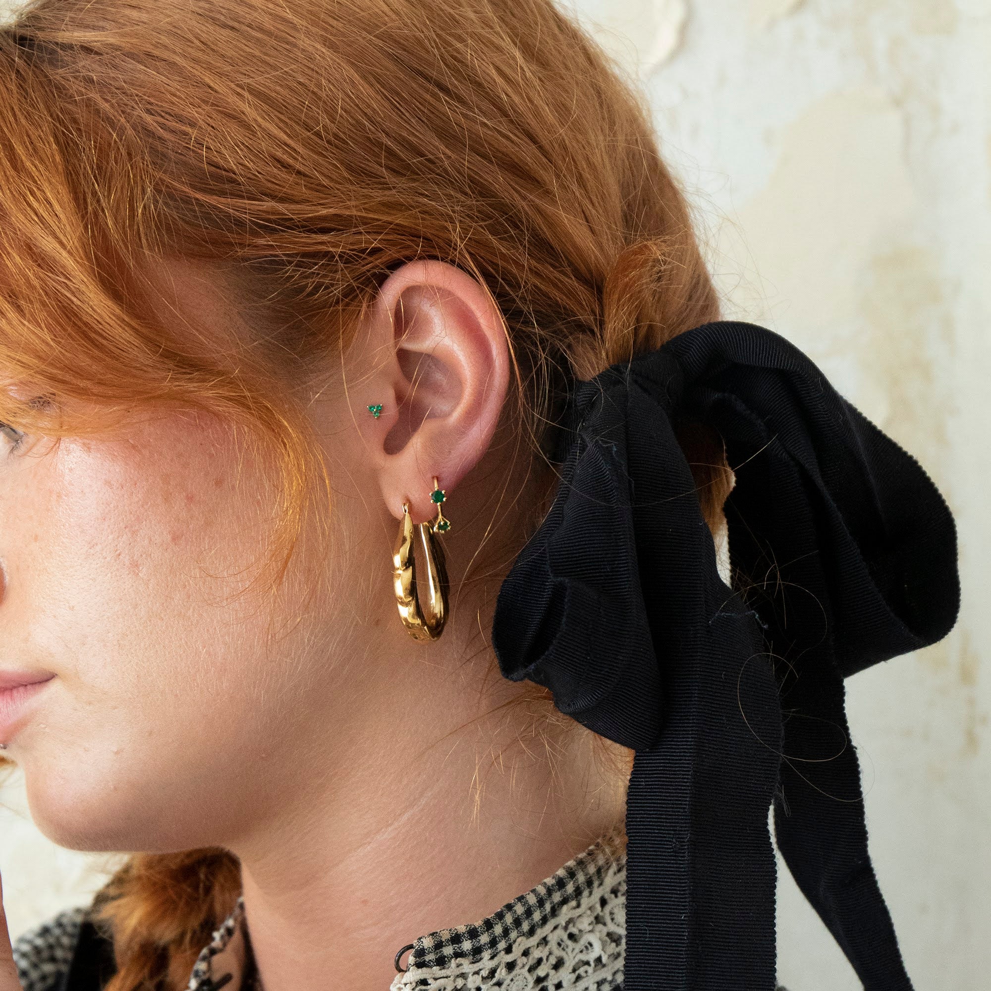 18ct Gold Vermeil Triple Emerald CZ Stud