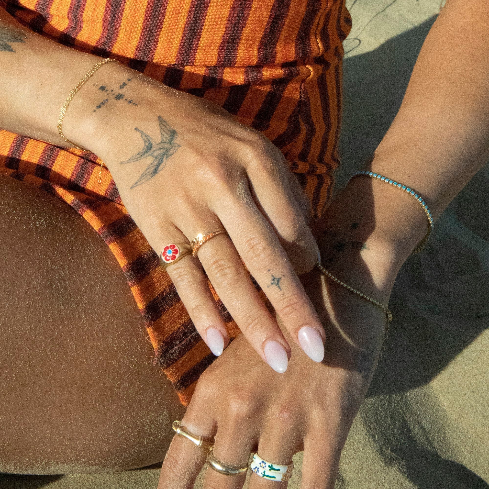 Over time, it's normal for Gold Vermeil jewellery to experience some signs of aging, meaning the gold layer can wear off and reveal the Sterling Silver underneath. But don’t worry! Our FREE Re-Plating Service will restore your Seol + Gold jewellery's original sparkle and shine. Our skilled team will polish and buff your pieces to perfection, then add thick layers (3 microns) of 18ct Gold to make them look brand new again.