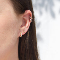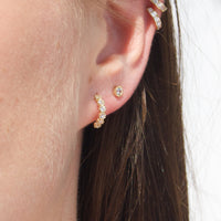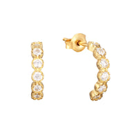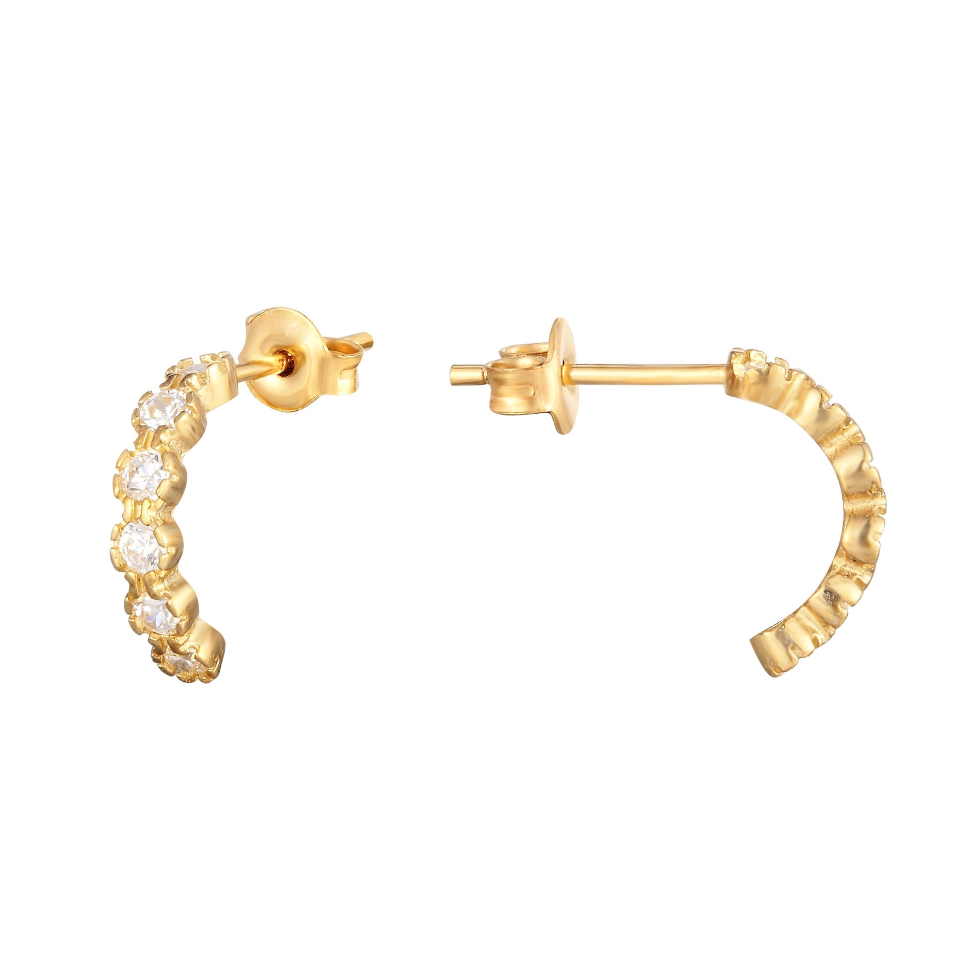 9ct Solid Gold tiny CZ half hoop scalloped studs