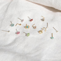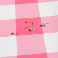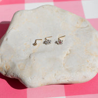 A 9ct solid gold nose stud with a flower-shaped design, adorned with cubic zirconia stones - seolgold