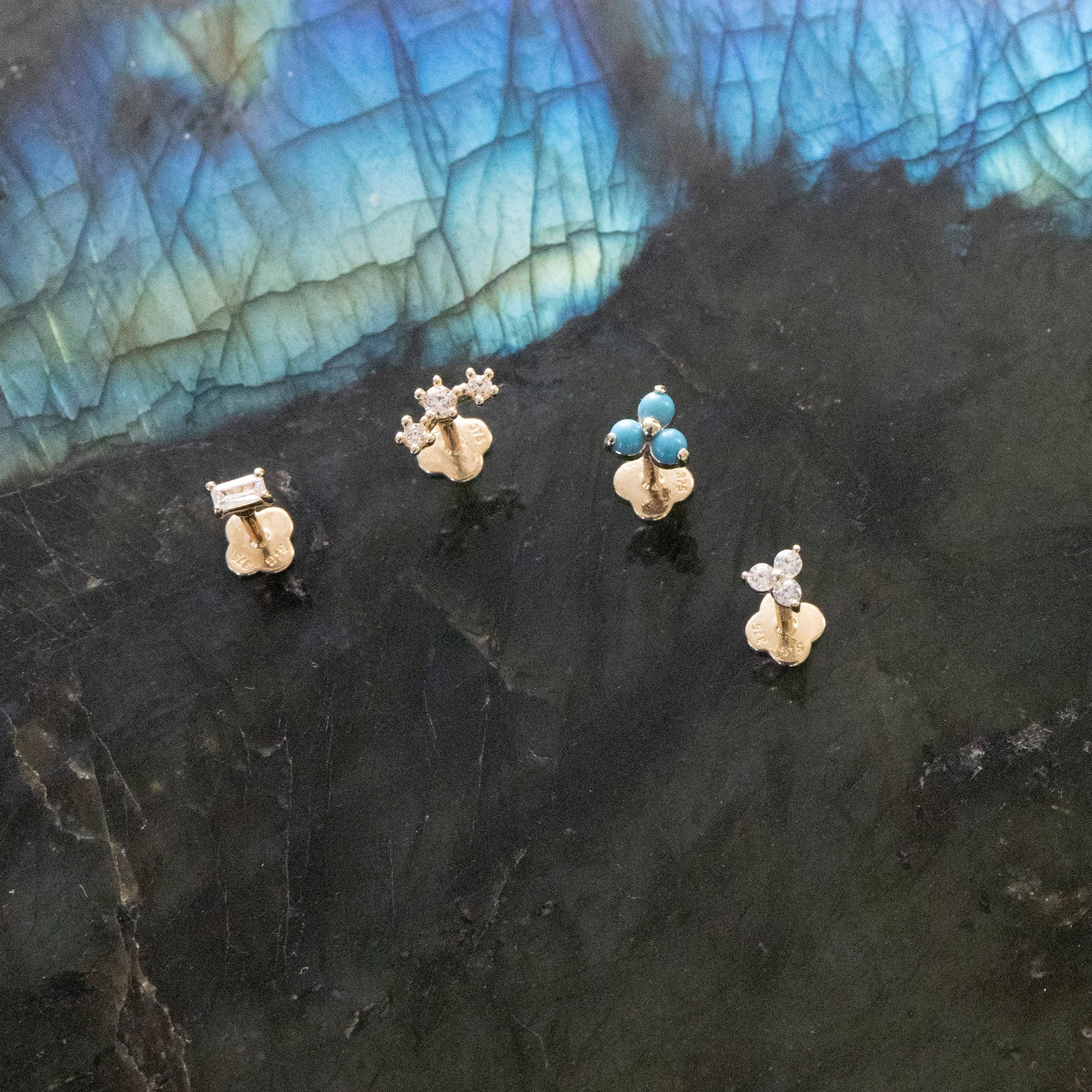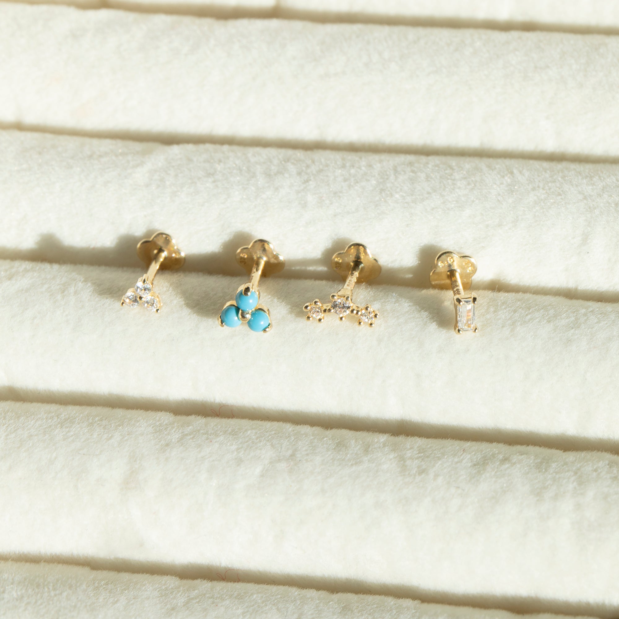 9ct Solid Gold Turquoise Labret Stud Earring - seolgold