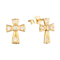 9ct Solid Gold CZ Cross Studs