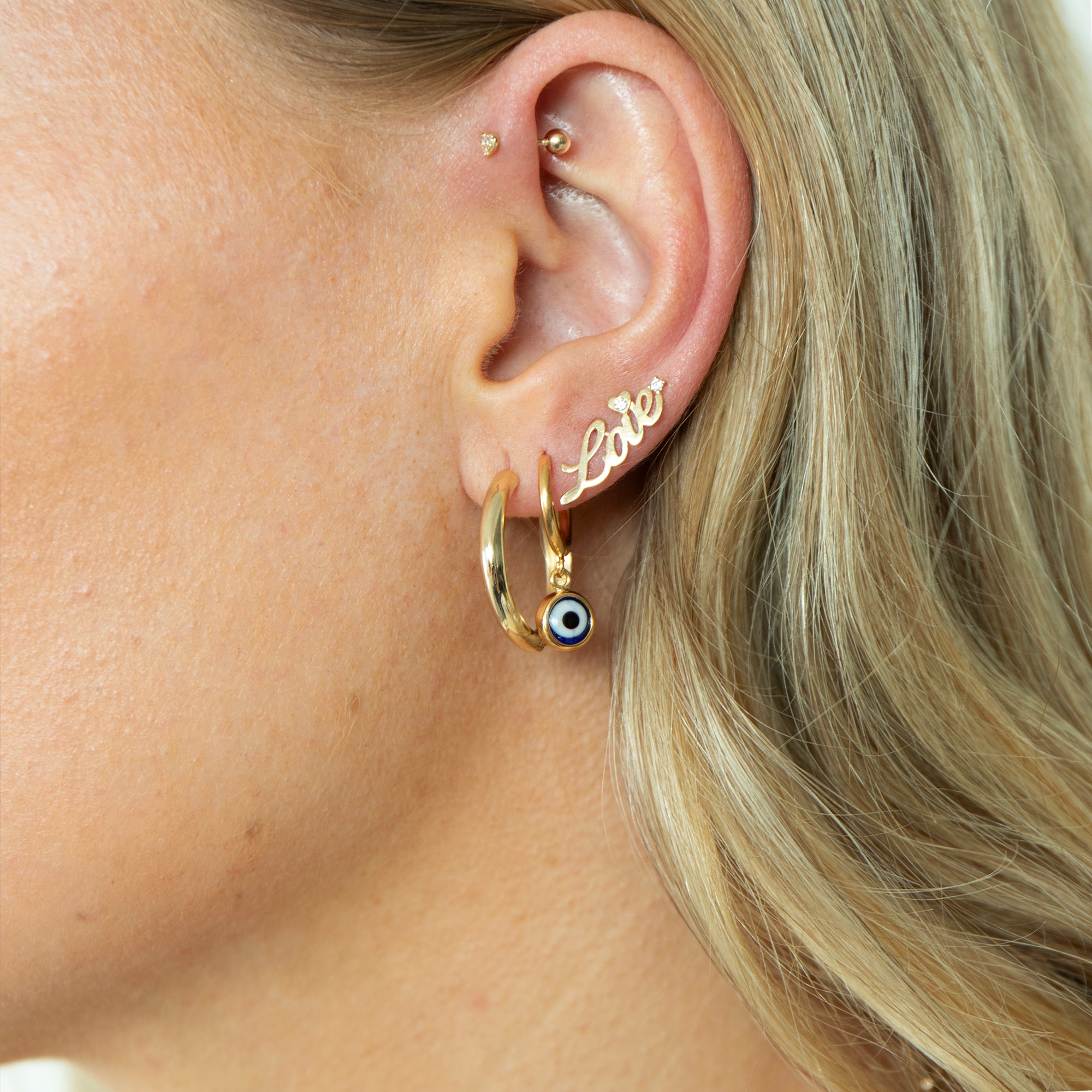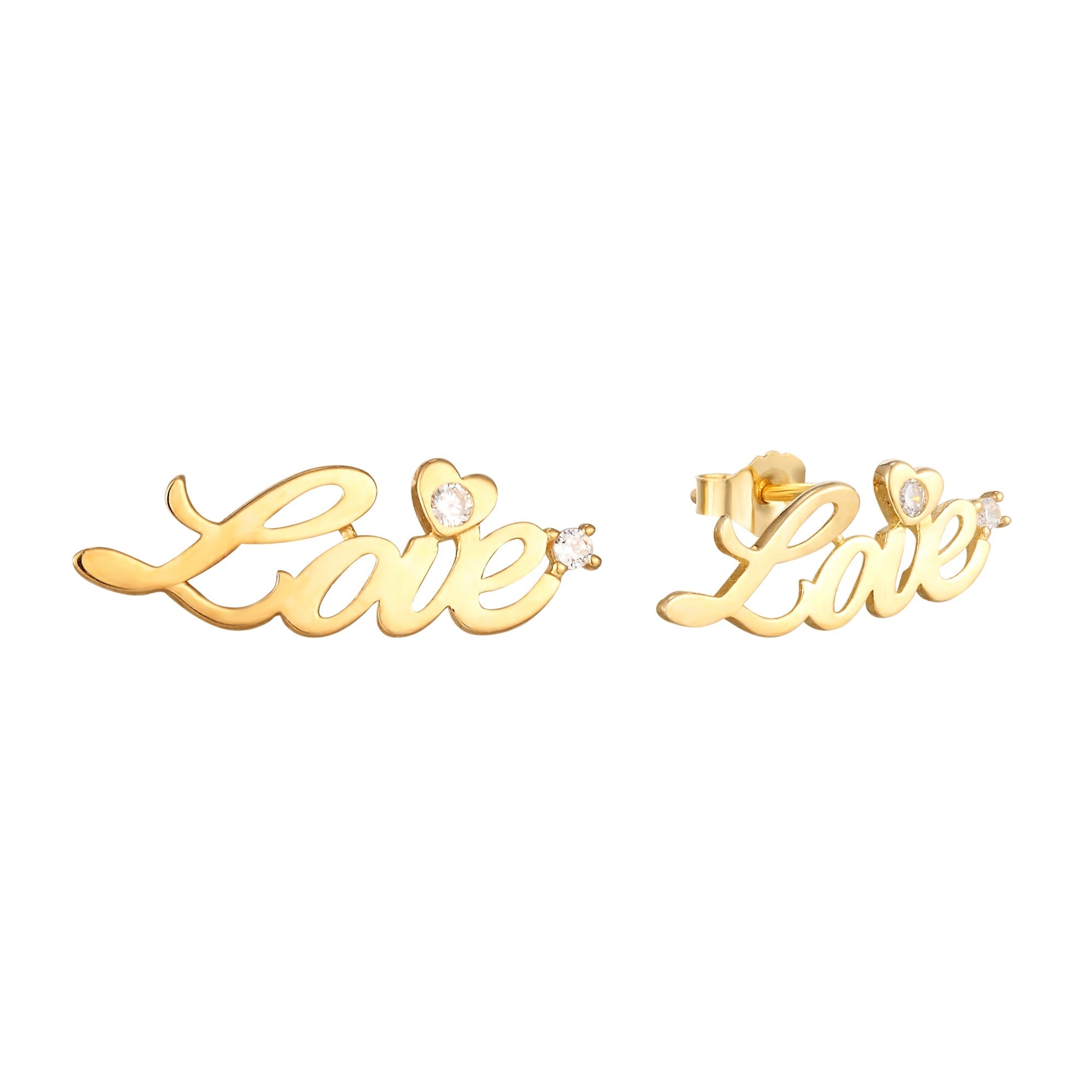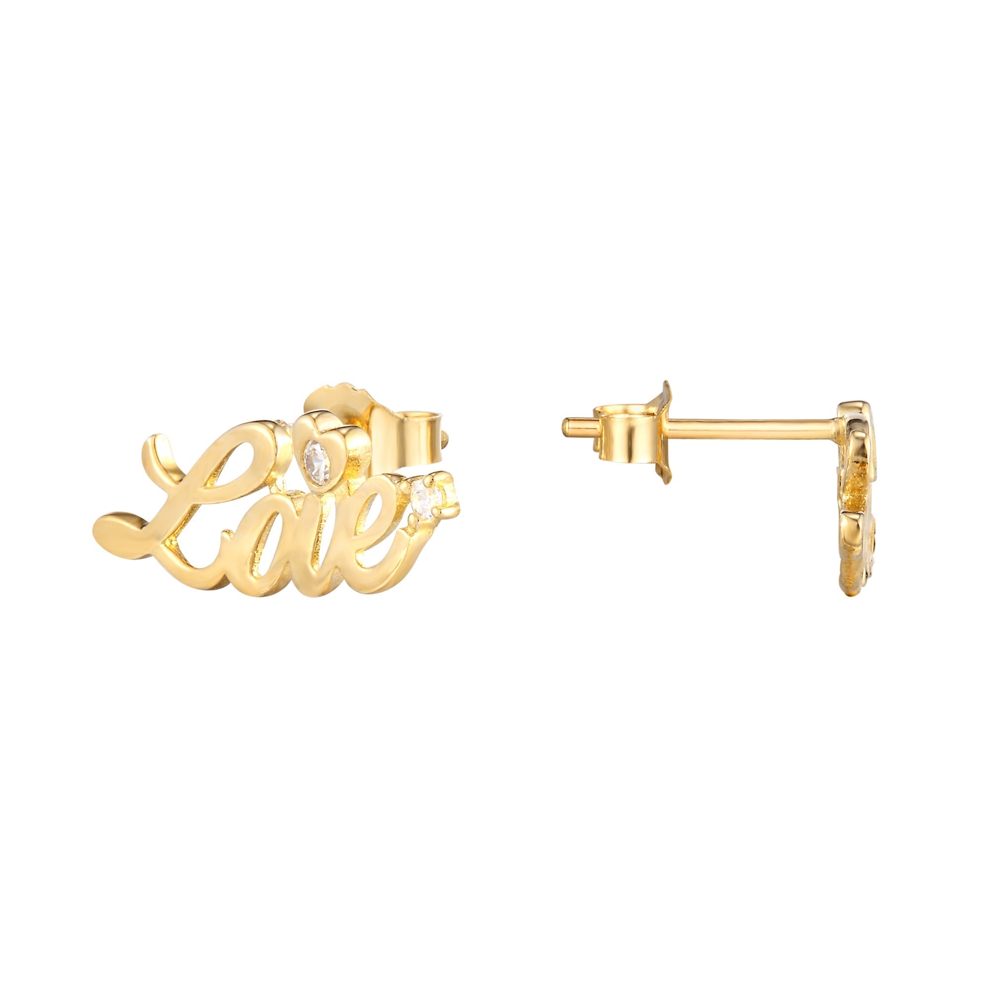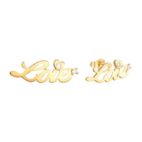 9ct Solid Gold CZ 'Love' word Stud Earrings