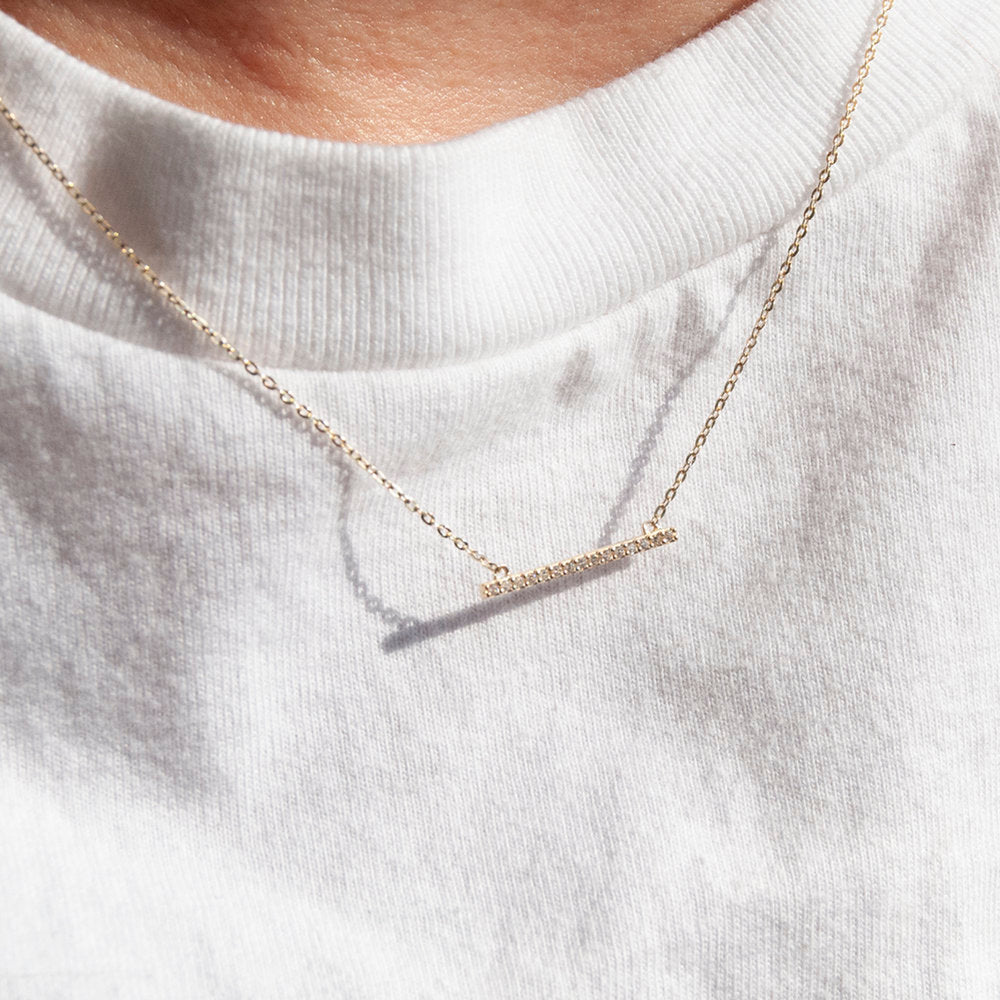 9ct Solid Gold Baguette CZ Necklace - seol gold