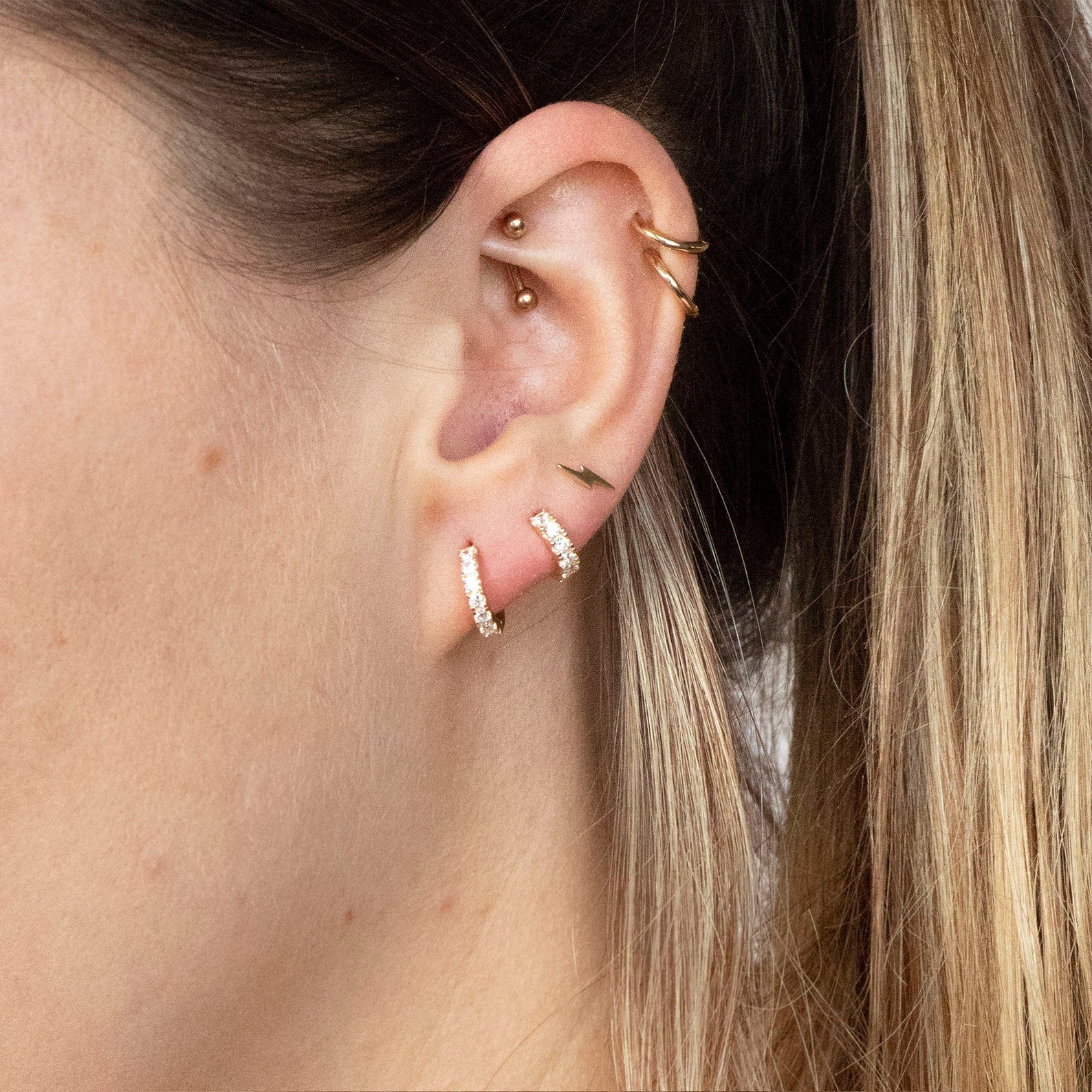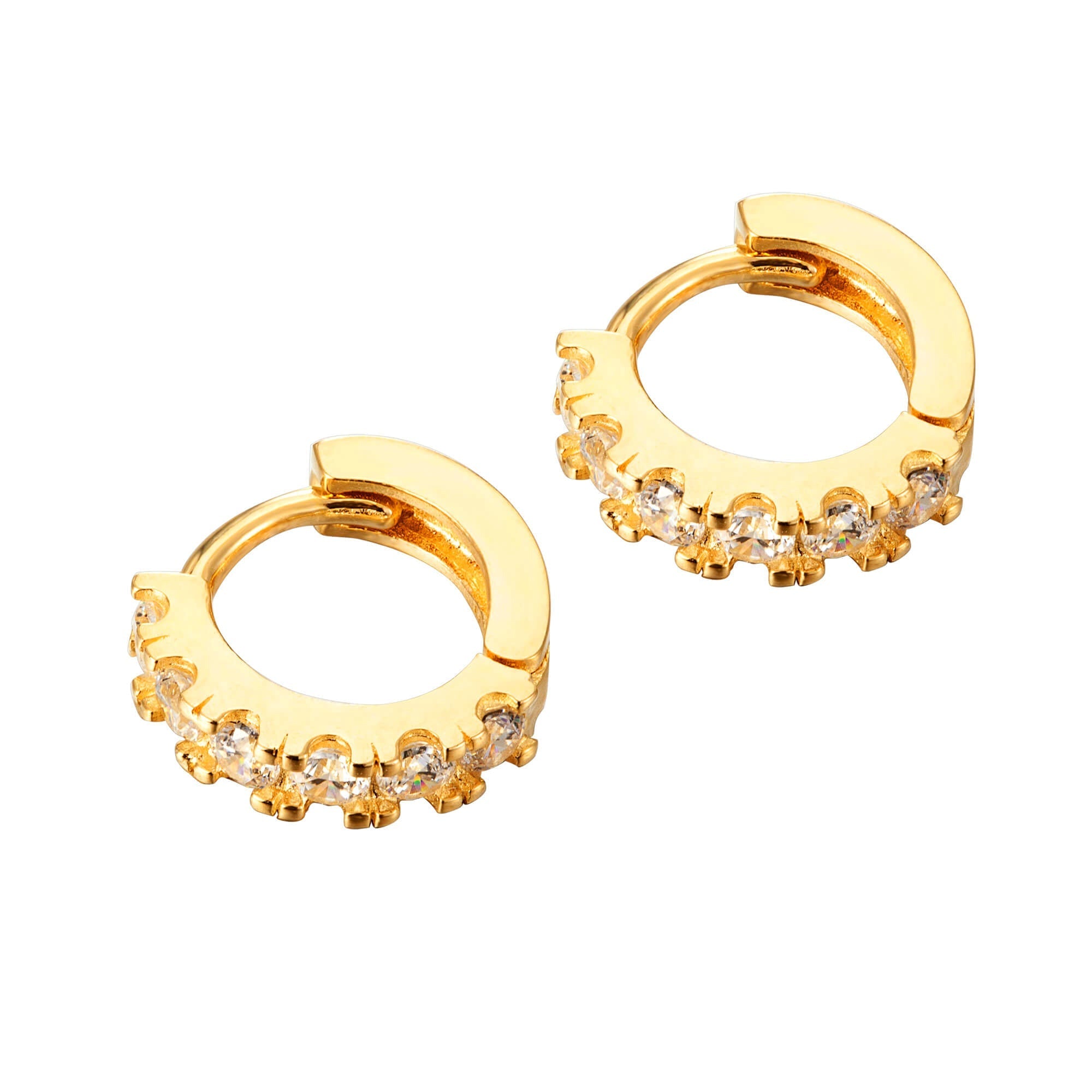 Seriously tiny 9ct Solid Gold CZ studded huggie hoops.