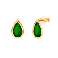 9ct Solid Gold Emerald CZ Teardrop Studs