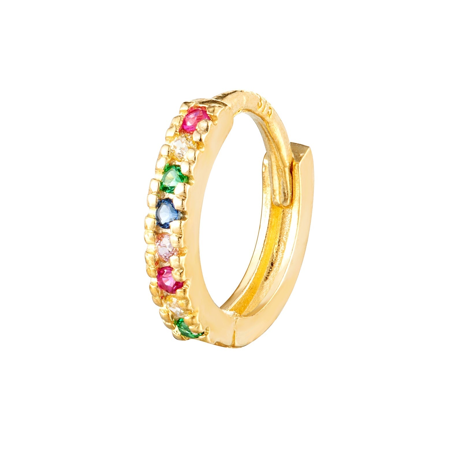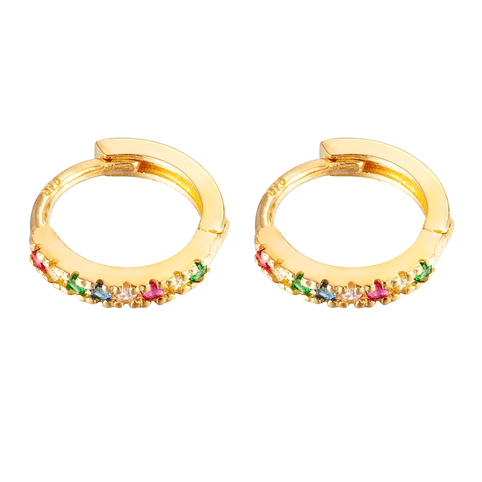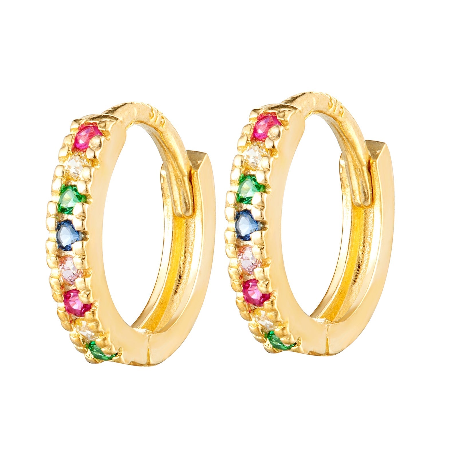 9ct Solid Gold tiny rainbow cubic zirconia studded huggie hoops