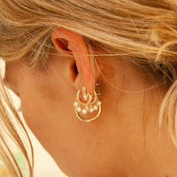 9ct Solid Gold Pearl Drop Charm Hoop Earrings