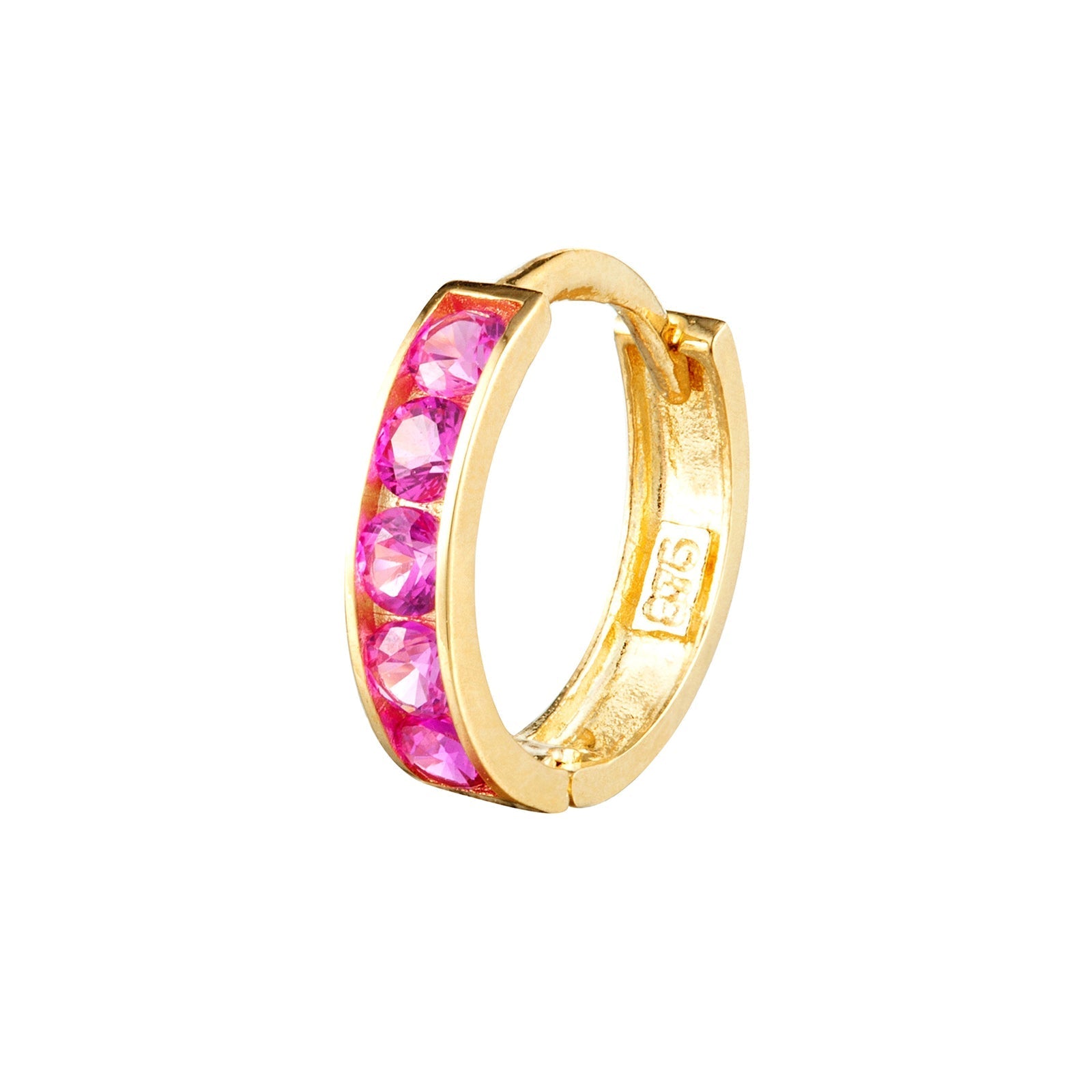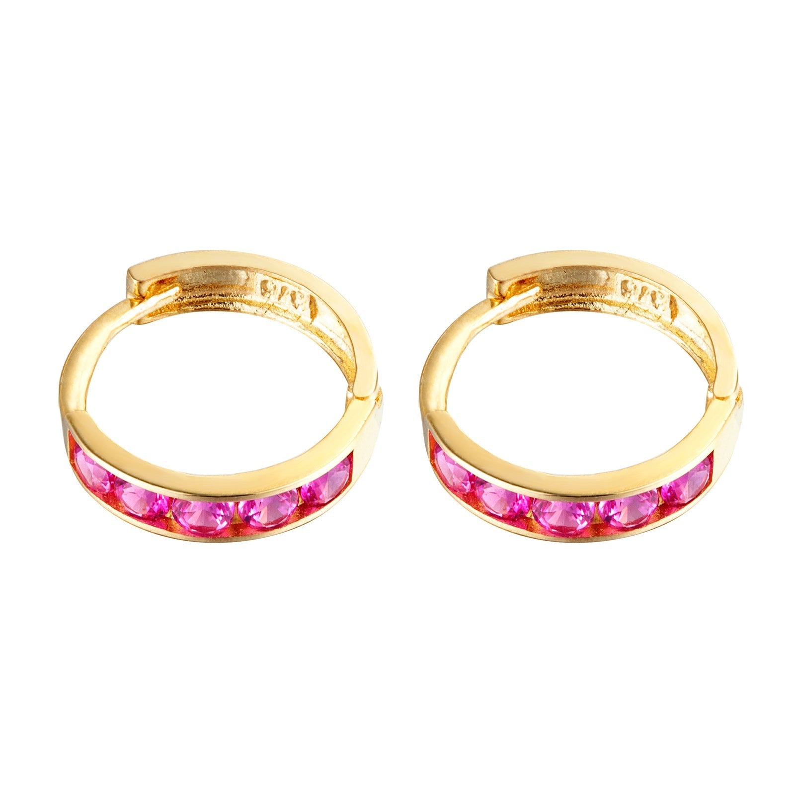 Gold hoop earrings with green emerald  gemstones on a white background - seolgold