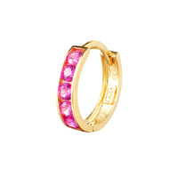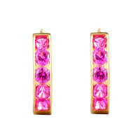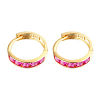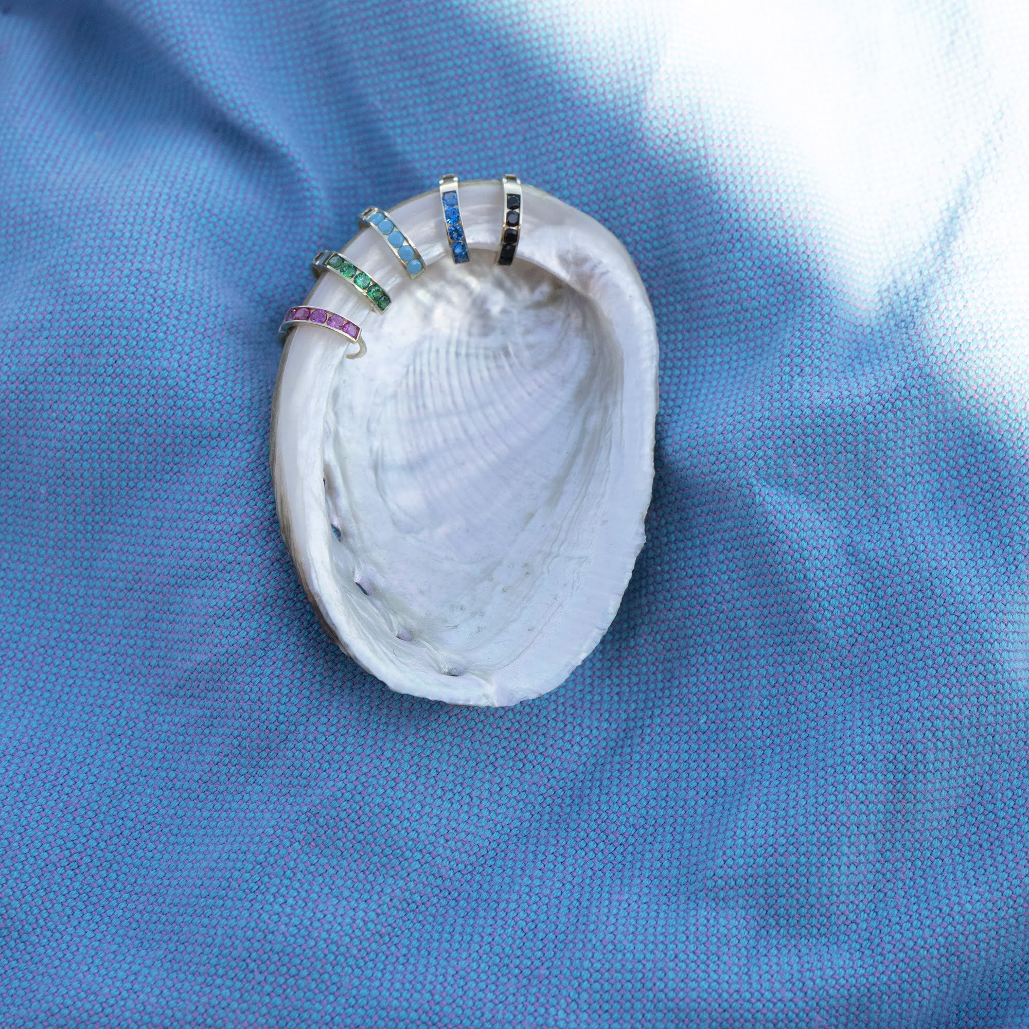 Gold hoop earrings with blue gemstones on a white background - seolgold