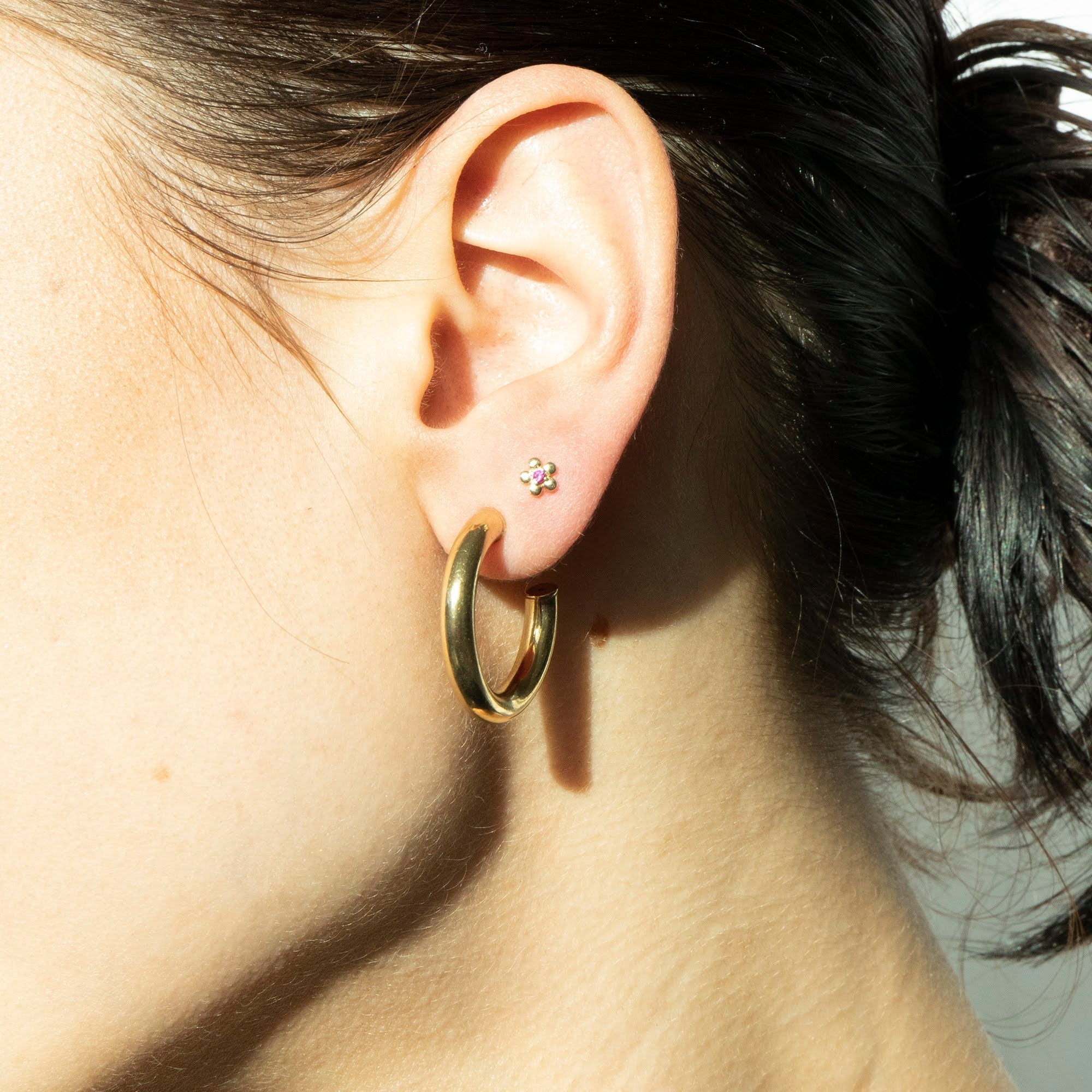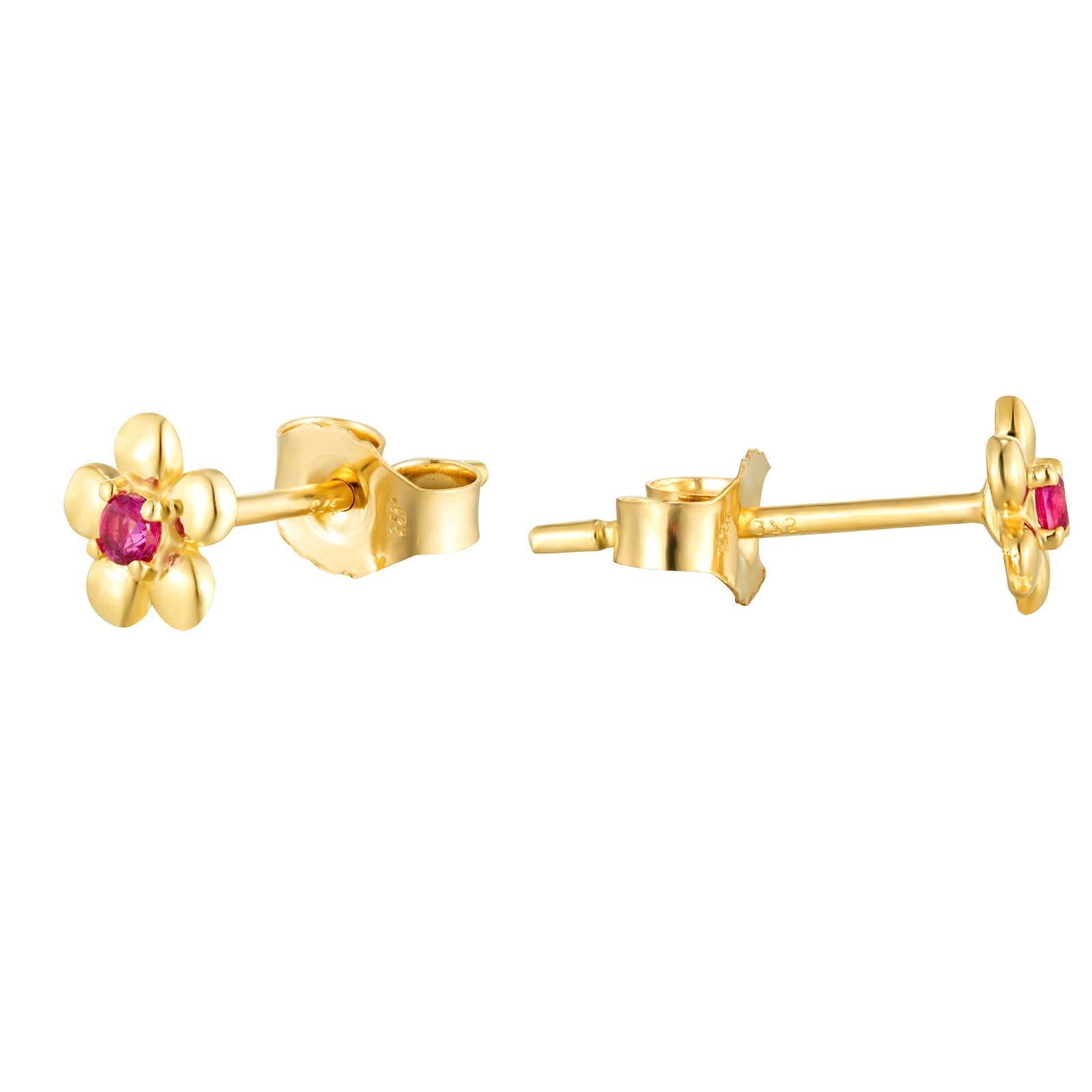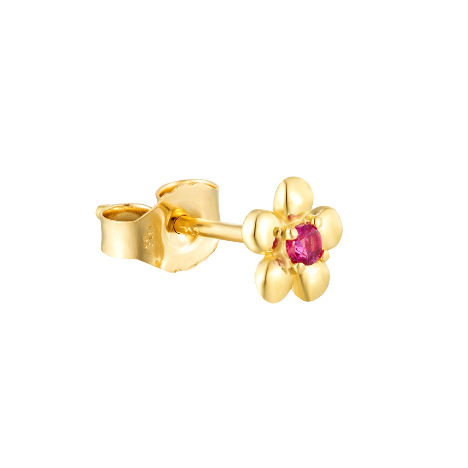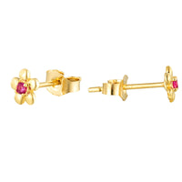 9ct Solid Gold Ruby Flower Stud Earring