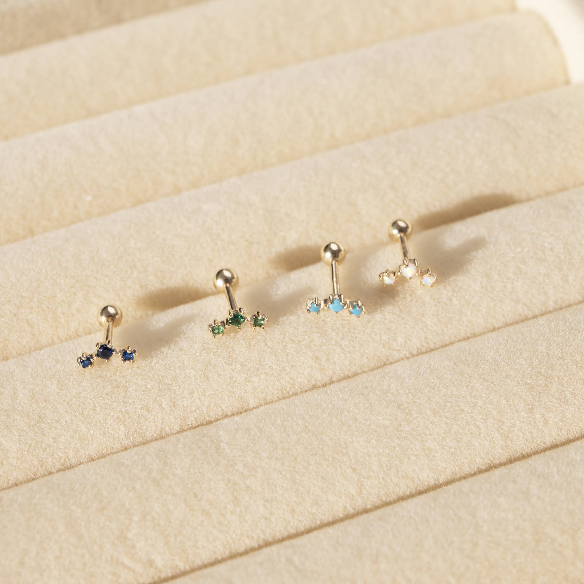 Gold hoop earrings with blue gemstones on a white background - seolgold