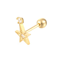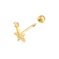 9ct Solid Gold Star CZ Barbell Stud Earring