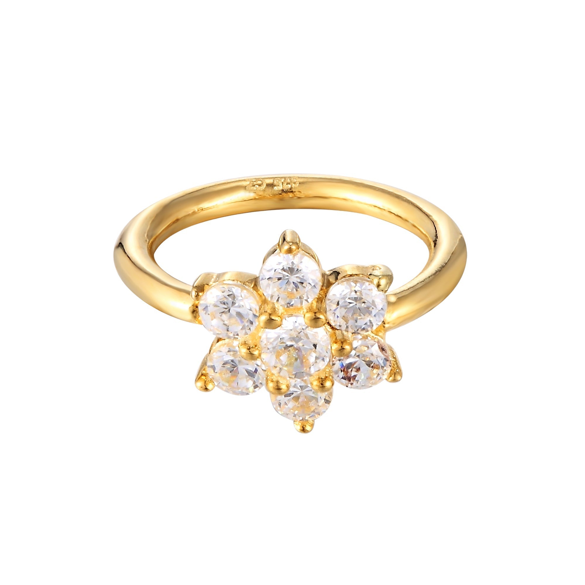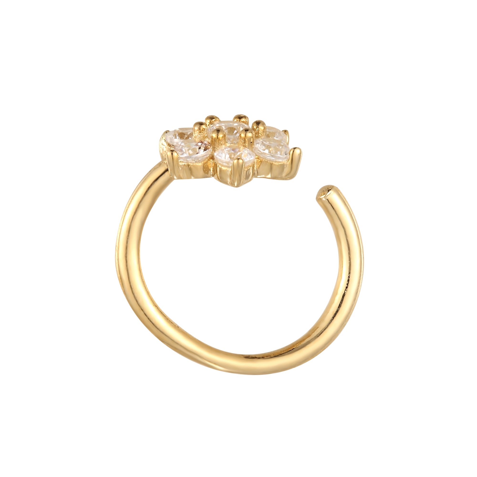 9ct Solid Gold Tiny CZ Flower Open Hoop