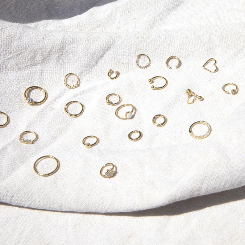 Seamless hoop wire secures, gently push this out to get into piercing and back into place