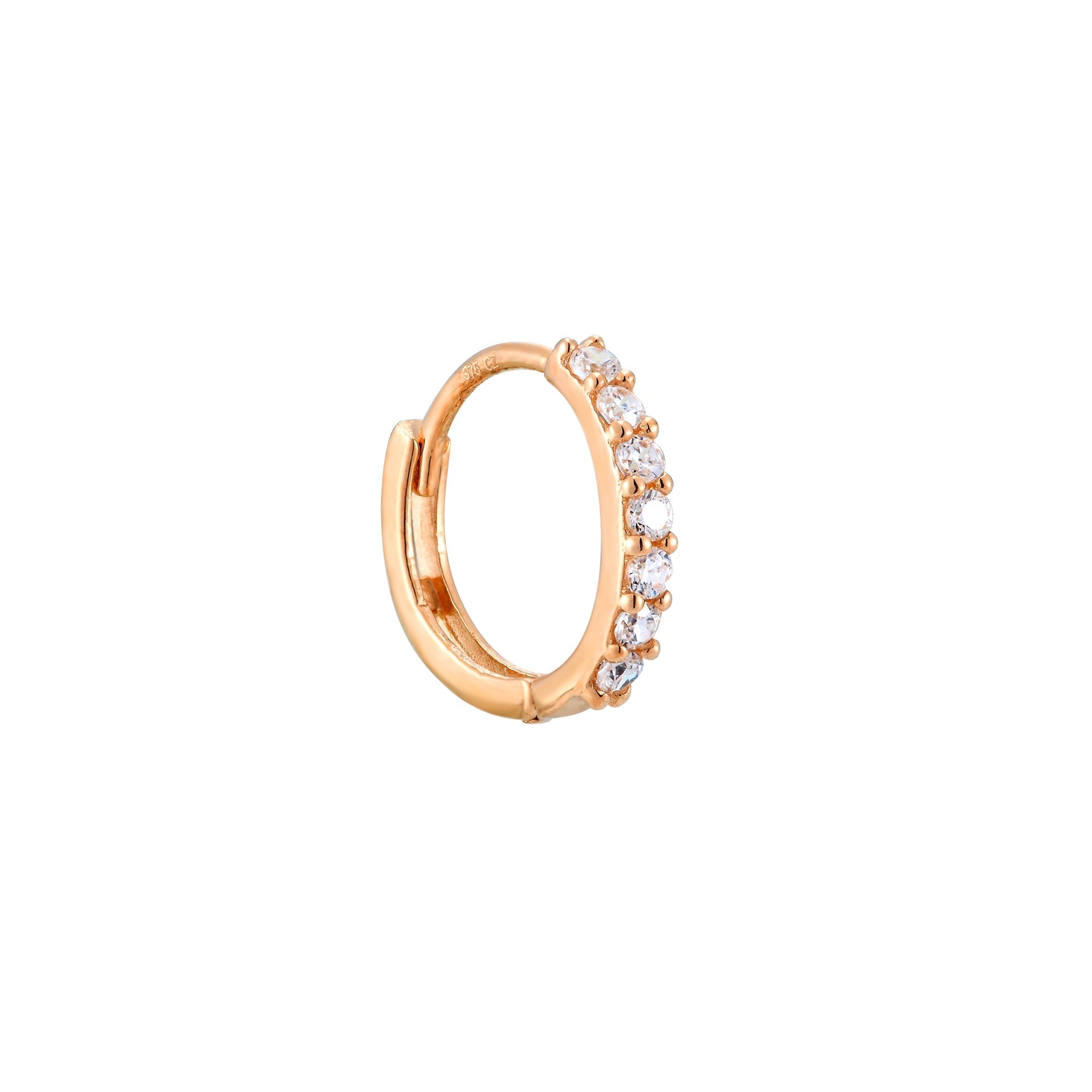 9ct Solid Rose Gold cz hoop earrings