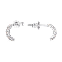 9ct Solid White Gold CZ Half Hoop Studs.