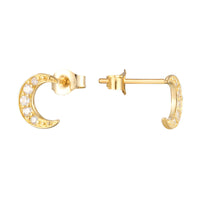 9ct Solid Gold CZ crescent moon shape stud earrings