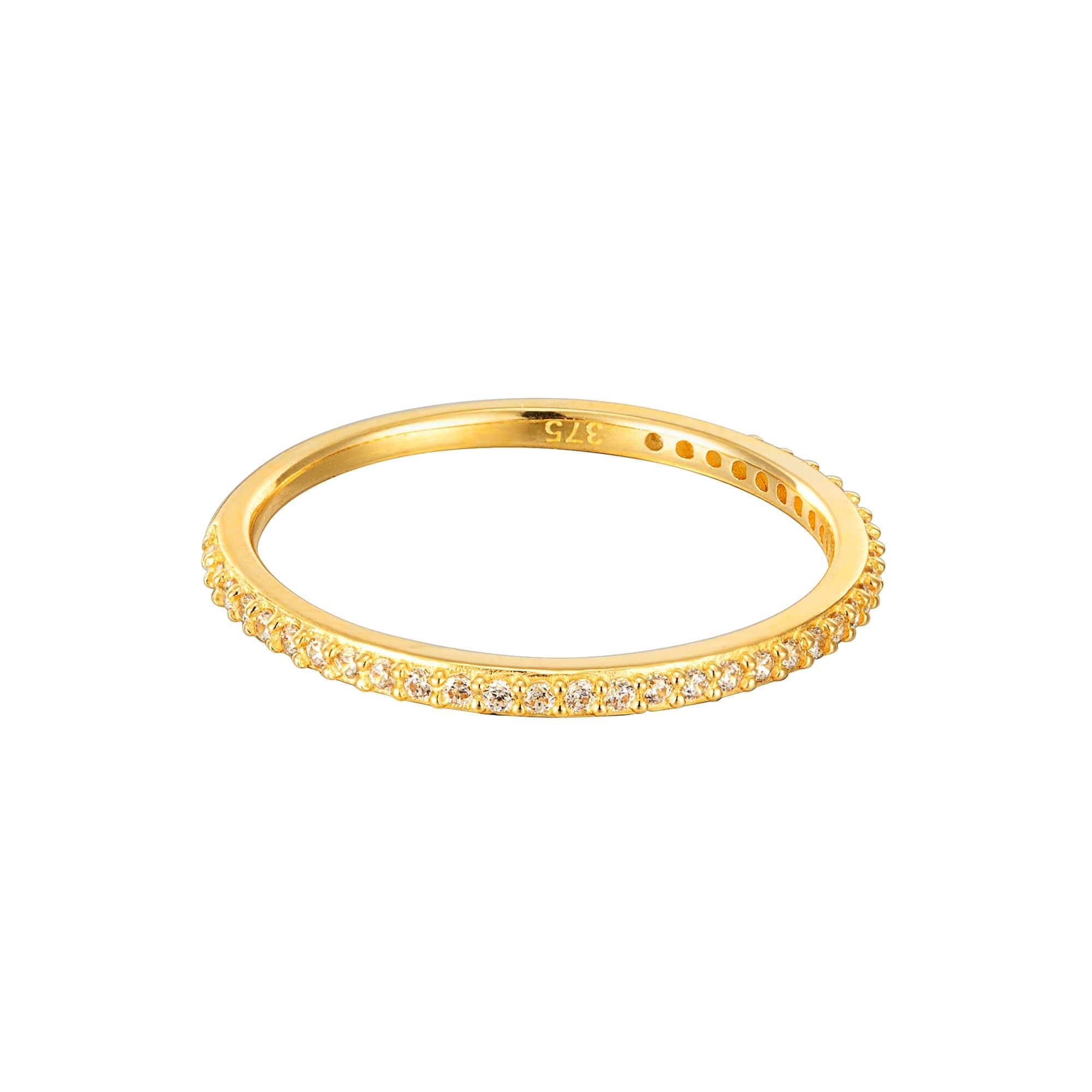 9ct solid yellow gold cubic zirconia studded eternity band ring