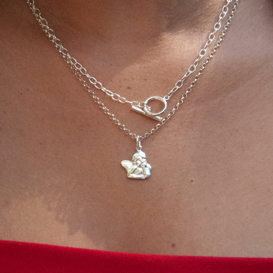 Cherub pendant measures 15.5mm (w) x 16.5mm (h)