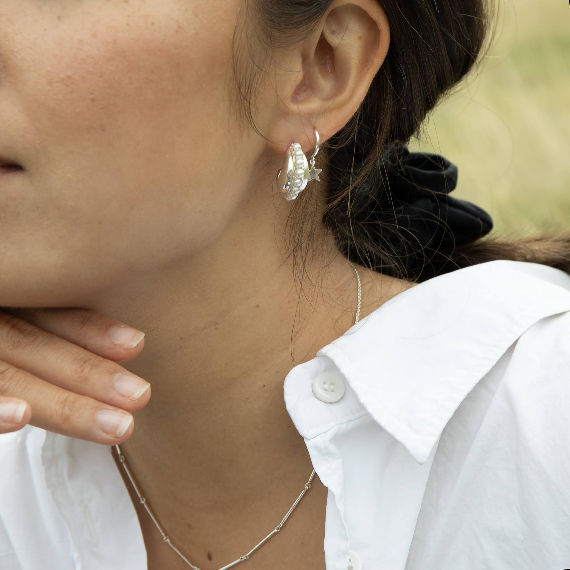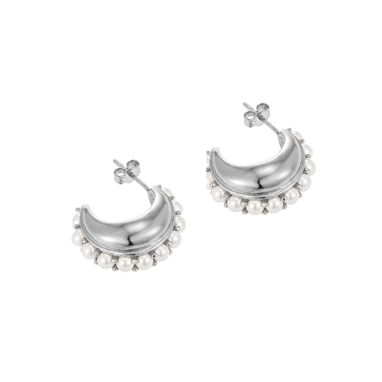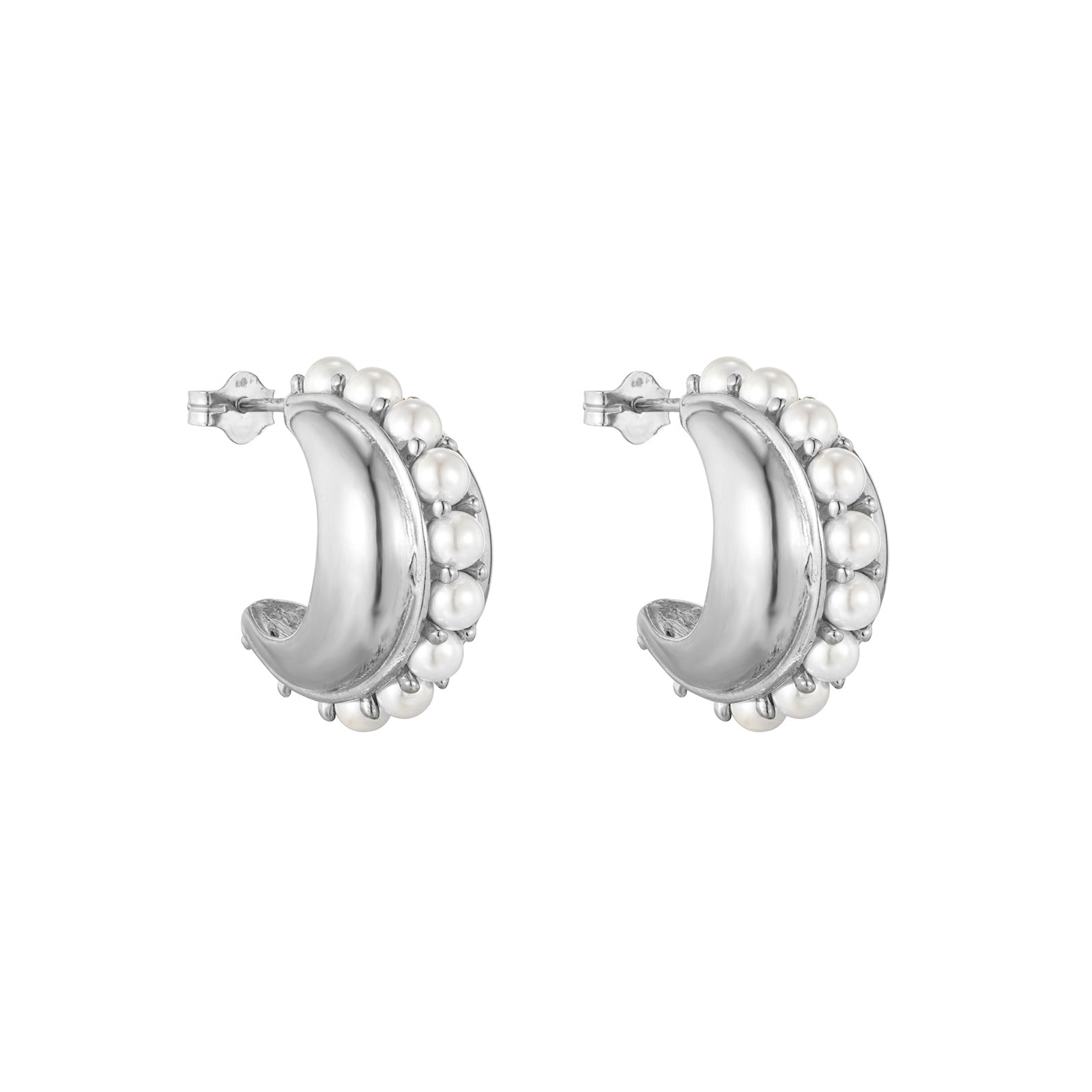 Sterling Silver Chunky Pearl Studded Half Hoops
