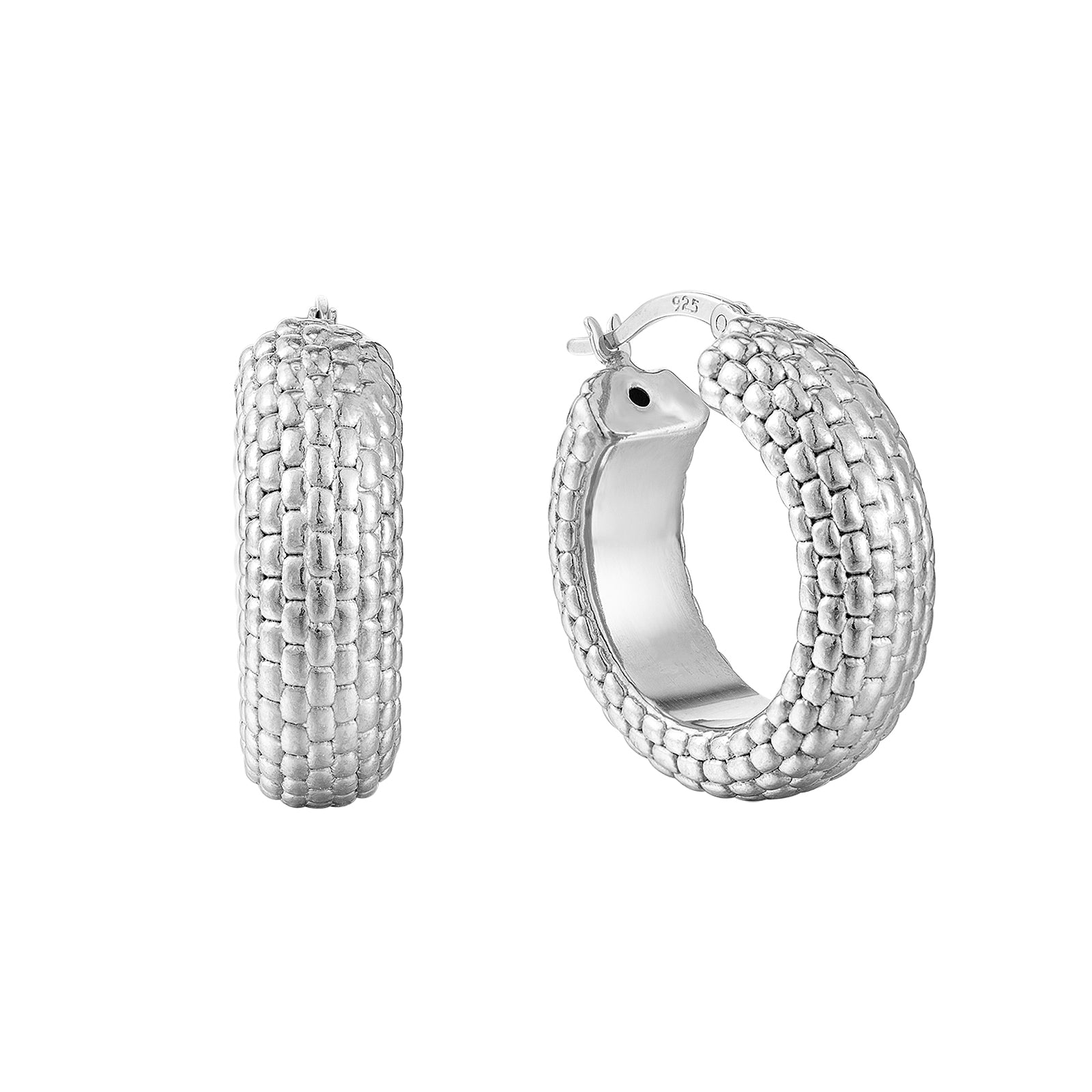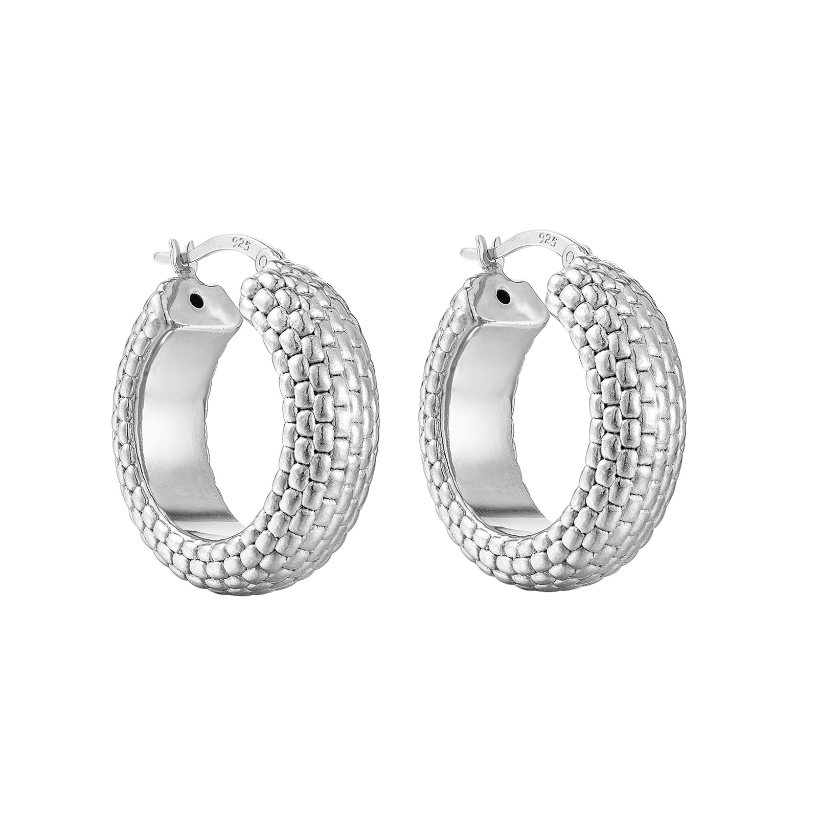 Sterling Silver Chunky Snake Chain Hoop Earrings