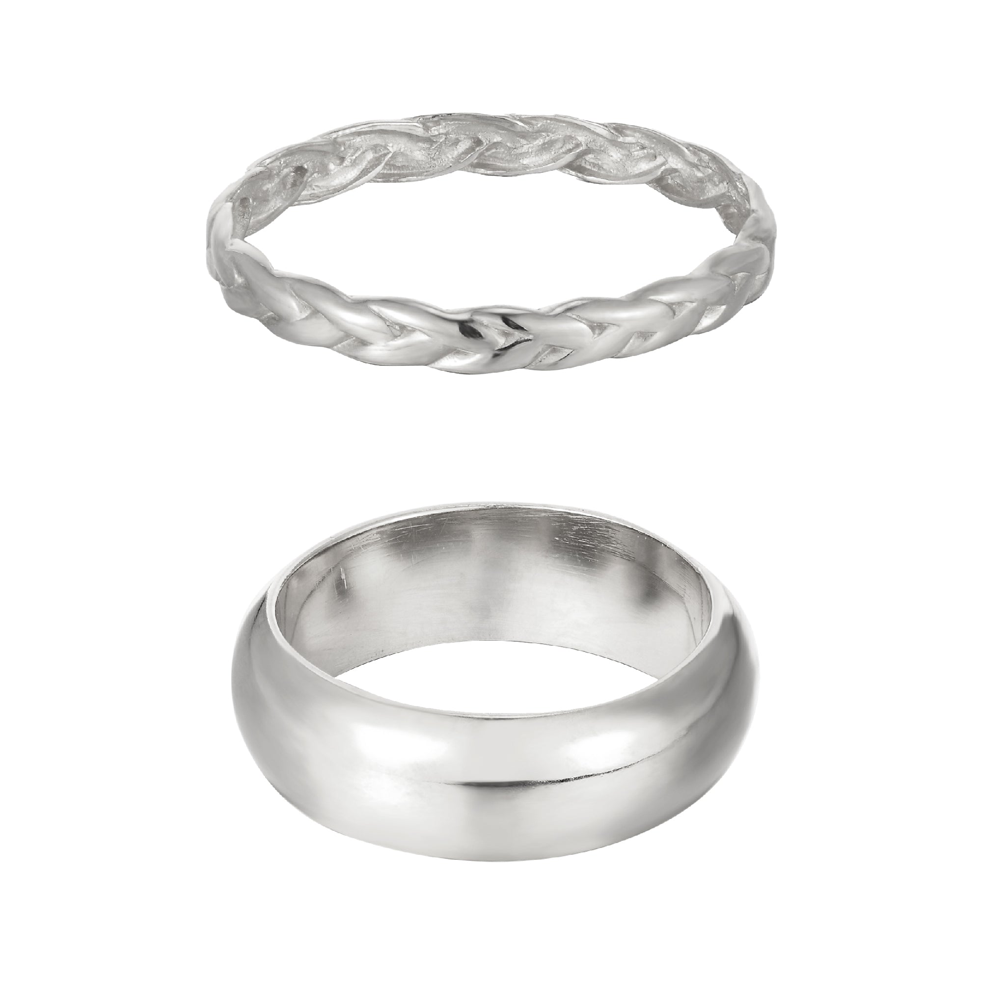 A set of the classics, our Curved Cigar Ring and Rope Plait Ring are ready to curate