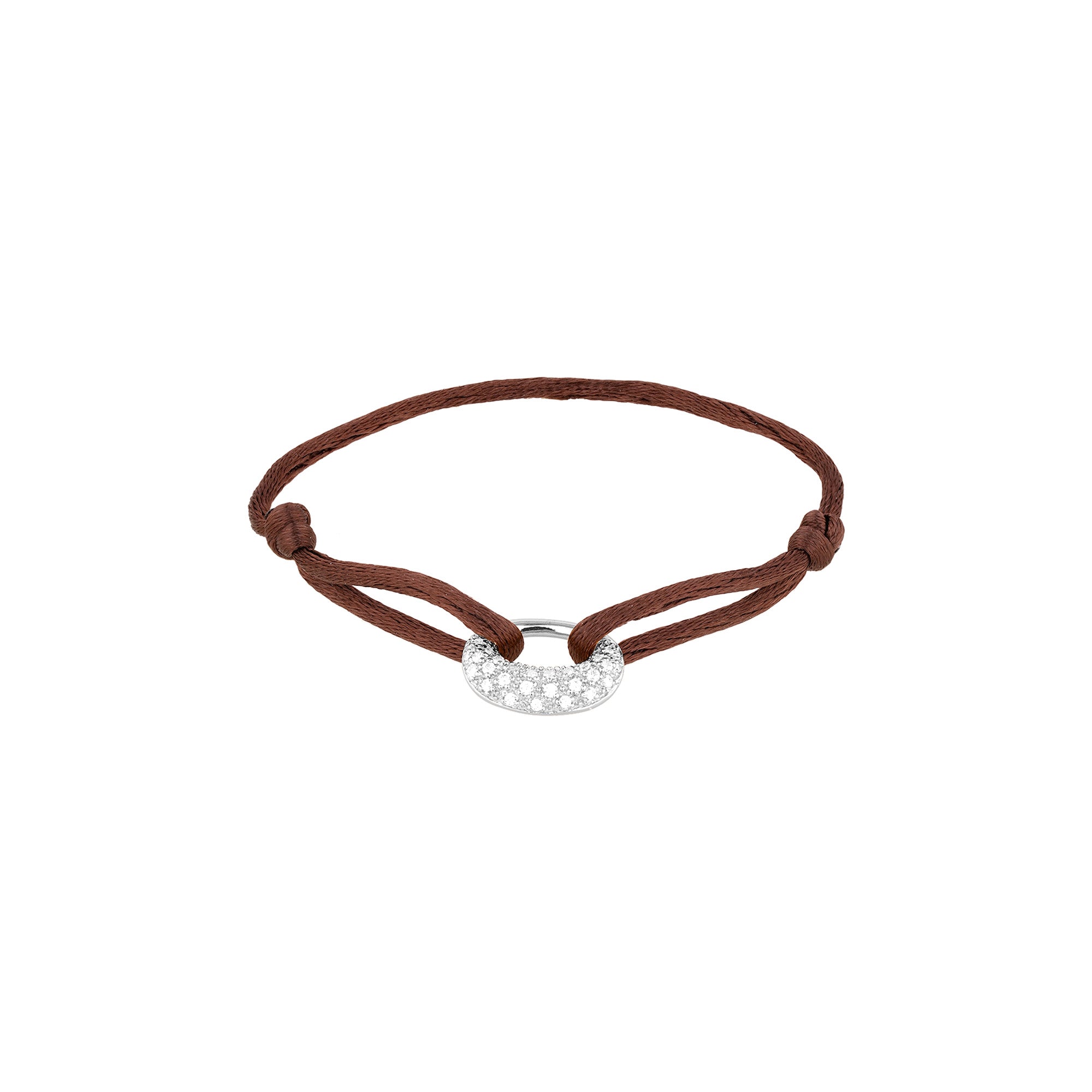 Sterling Silver CZ Pave Pebble Cord Bracelet