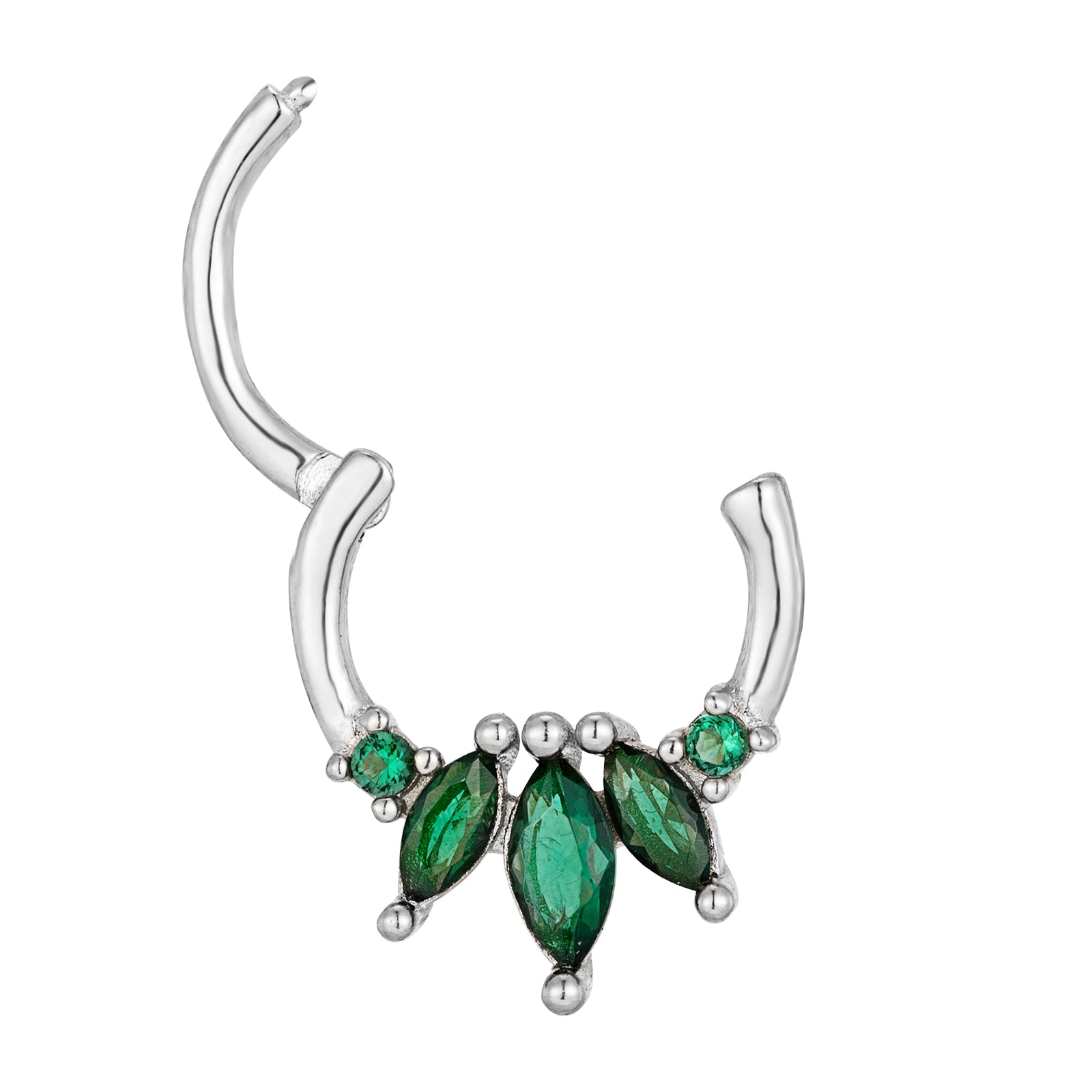 Sterling Silver Emerald CZ Flat Back Earring - seolgold