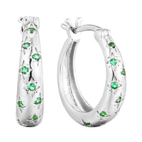 Sterling Silver Emerald Star Set 14.5mm Hoops